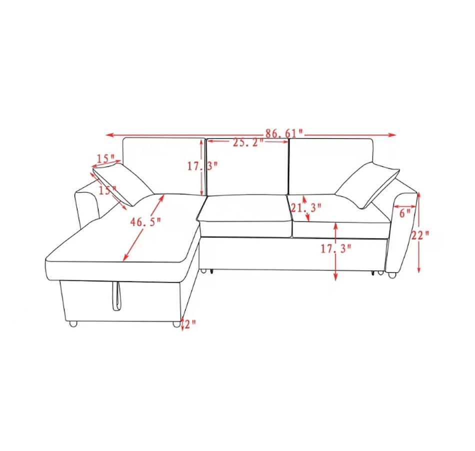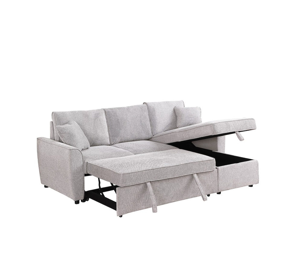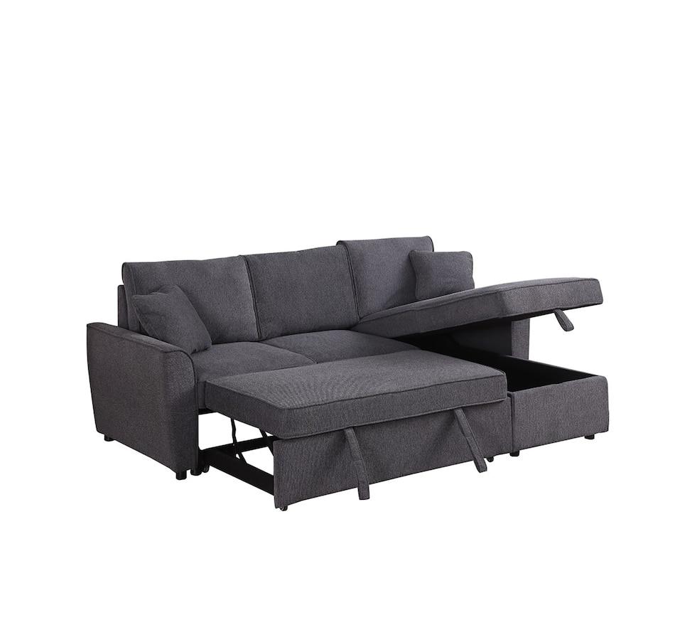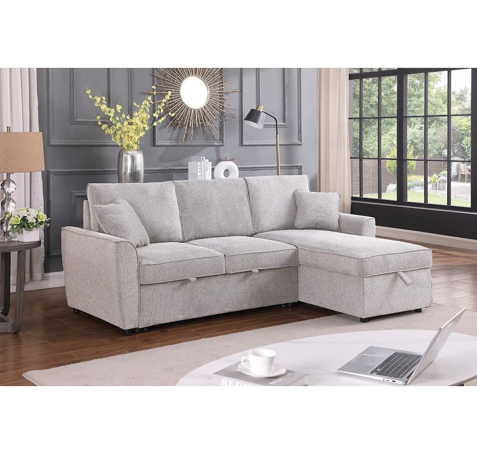 Designed with timeless styling in mind, the Brassex Aria sleeper sofa bed features a 100% plush polyester fabric cover and functionality as a reversible storage chaise.
