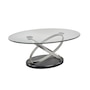 • Composition: tempered glass with an aluminum ring (top), steel with electrochromic finish (frame) birch veneer (base)