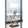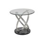 • Composition: tempered glass with an aluminum ring (top), steel with electrochromic finish (frame) birch veneer (base)