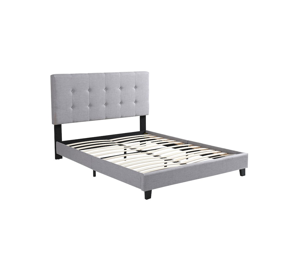 Sink into comfort with this supportive and stylish Brassex platform bed frame. The upholstered platform bed is wrapped in premium fabric and features tufted accents for added flair. Crafted in a low profile with clean lines, this platform bed brings a fresh, modern feel to any bedroom.