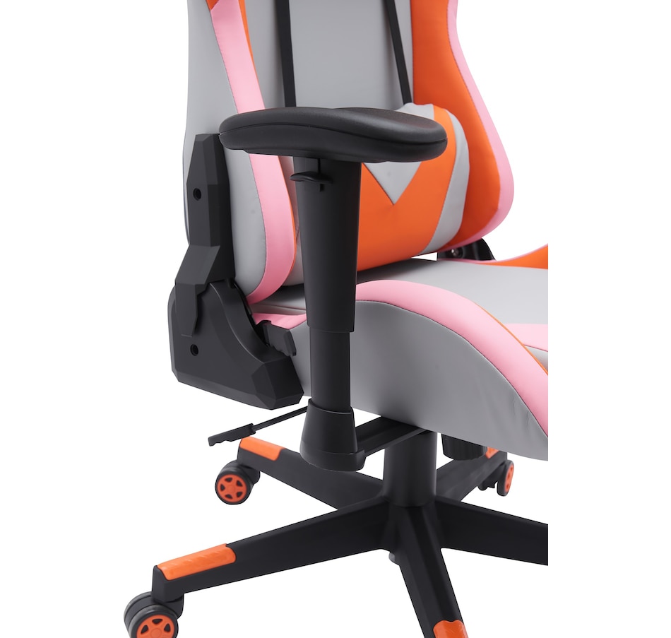 Designed with versatility for optimal comfort and use, the Brassex Myla gaming chair features an adjustable height with 100mm hydraulic lift, decline mechanism, fixed armrests, and a 350mm nylon base.