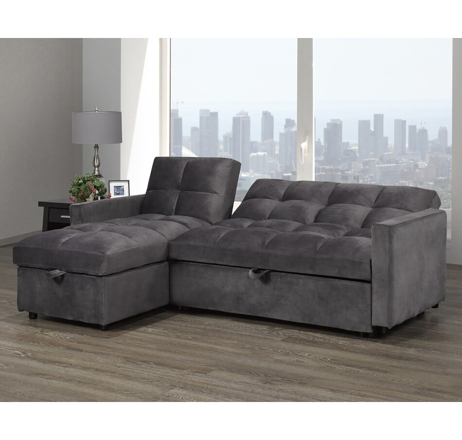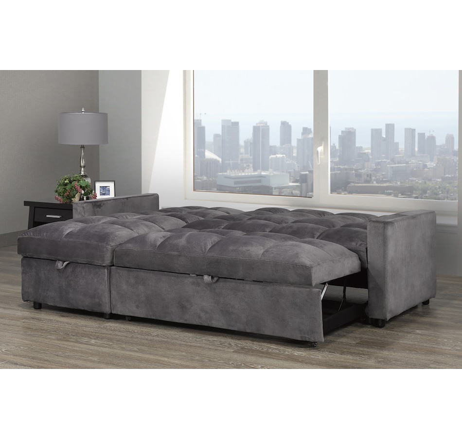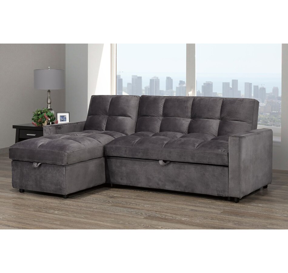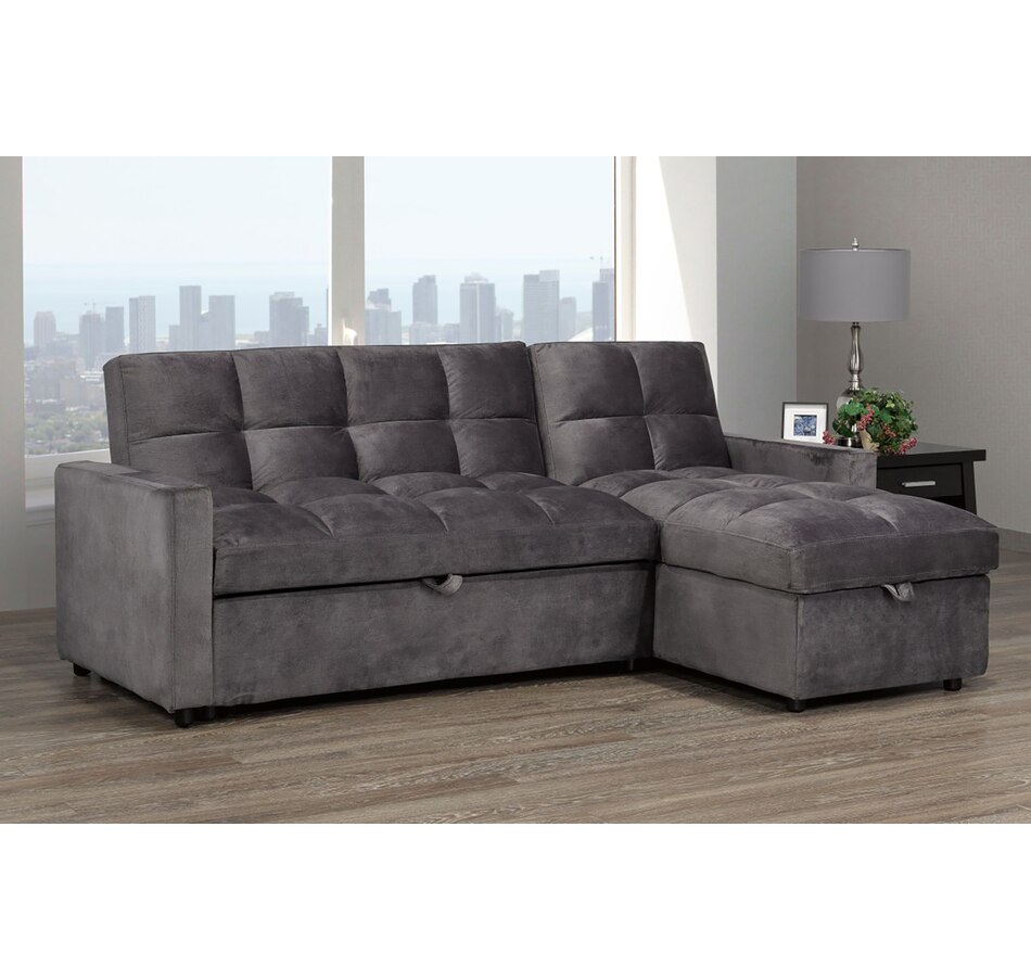 Designed with space-saving functionality in mind, the Brassex Tivoli sectional sofa bed features comfortable seating and functionality as a reversible storage chaise.