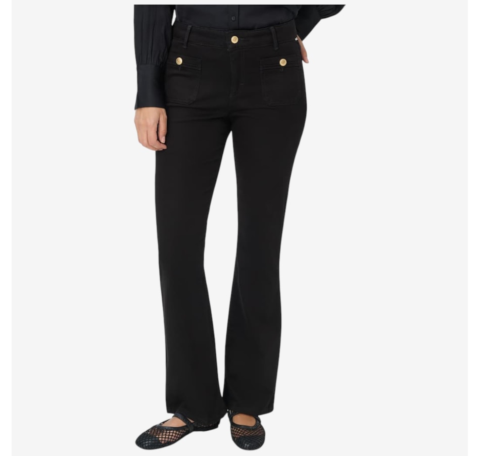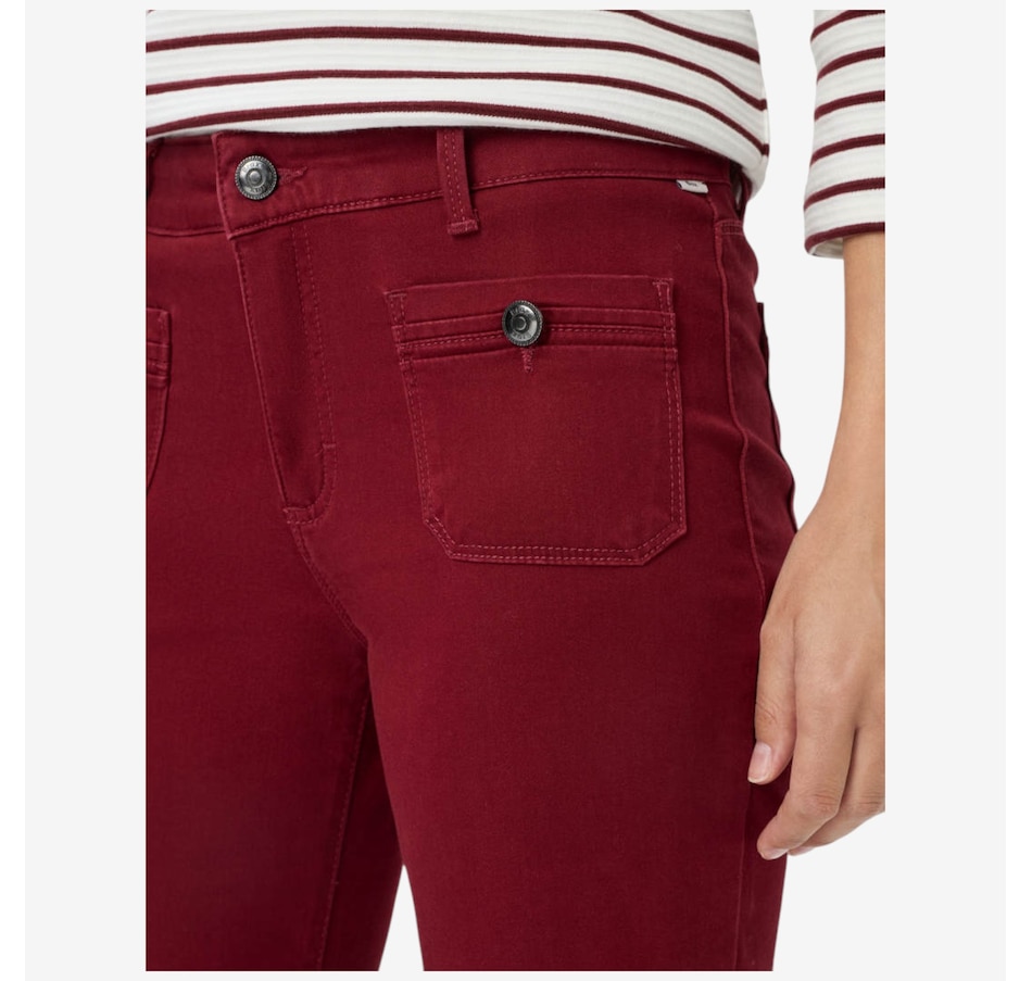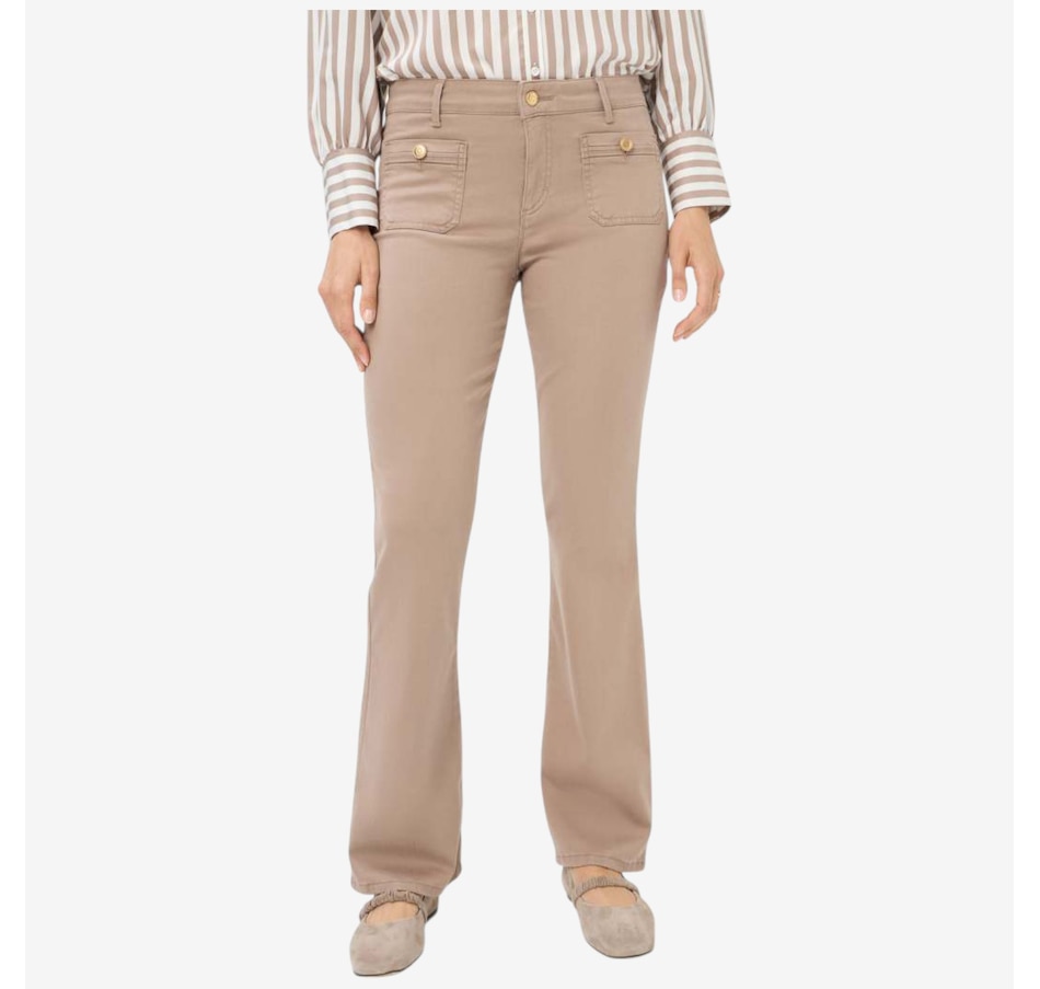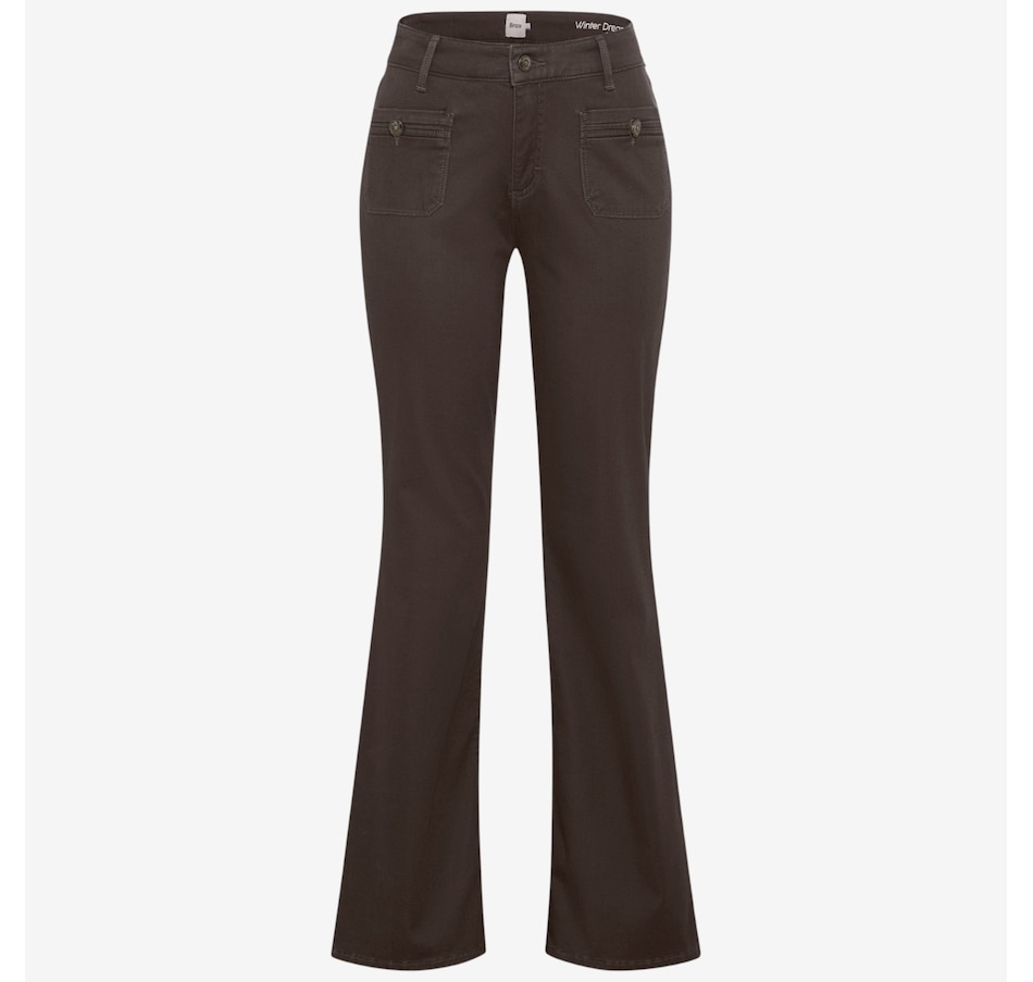 This is the Shakira cotton dream trouser: slim with a slightly flared bootcut for a feminine, modern silhouette. Patch back pockets, slash pockets, and decorative gold buttons give classic five-pocket style a sophisticated update. Crafted in cotton dream satin blend, it is luxuriously soft, has a gentle stretch, and retains its shape beautifully. Available in autumnal hues, the