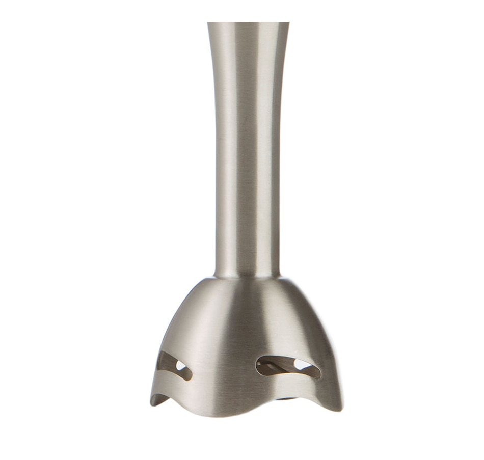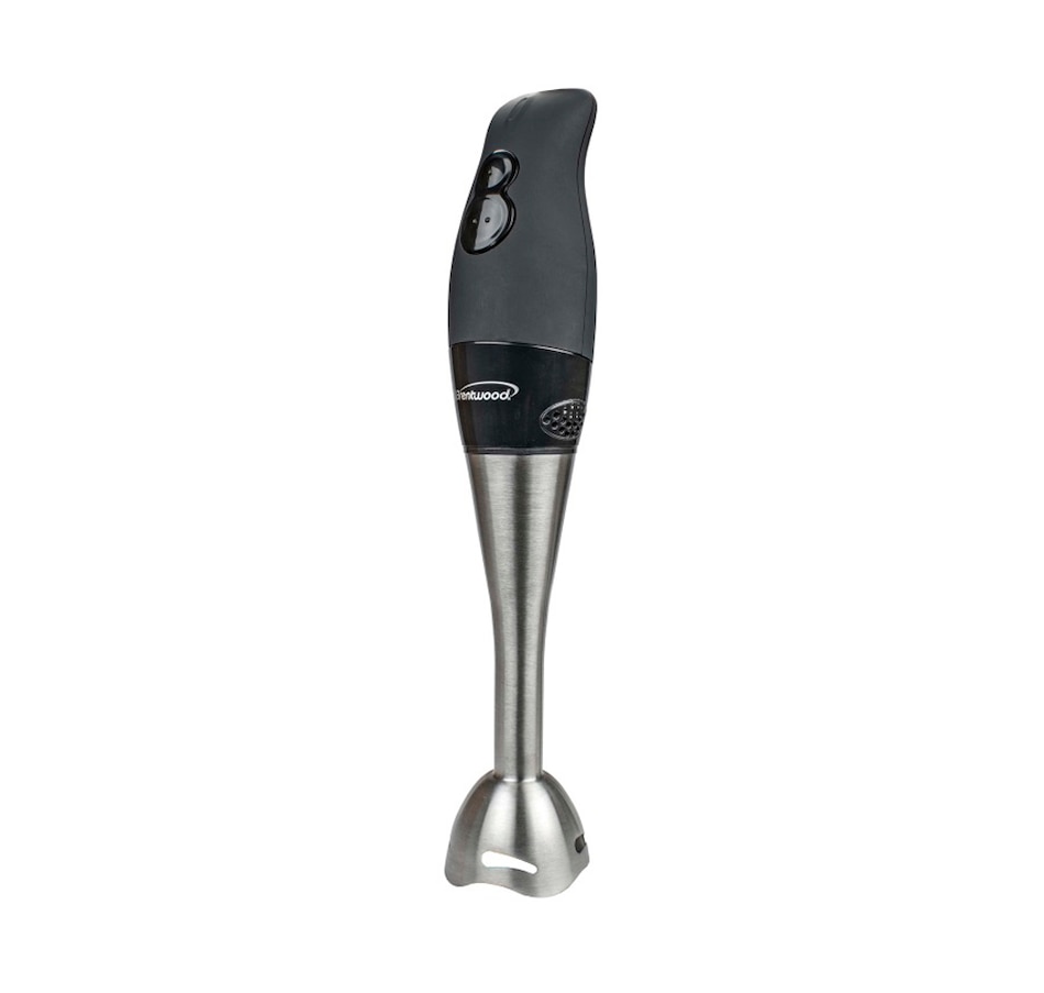 Use the powerful Brentwood HB-33BK 2-Speed 200W Hand Blender to crush ice, blend batter, puree baby food, mix soap and so much more! Comfortably blend for extended amounts of time thanks to the ergonomic soft grip, soft touch buttons, and durable stainless steel blades. The stainless steel blending shaft conveniently reaches into pitches, pots and bowls, and you'll be sure to move freely with the extra long 5' cord. It stands upright for an incredibly small spacial foot print, and you can easily store it in a drawer by separating it into two pieces. The blending shaft also separates from the motor and is 100% dishwasher safe.