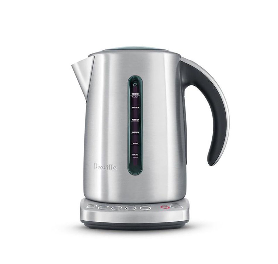 The IQ kettle from Breville features five different temperature settings and a soft open lid. This seven cup capacity kettle knows the ideal temperature for tea or coffee too; the five varietal settings brew at the right temperature for black, green, white, and Oolong tea, as well as French press coffee.