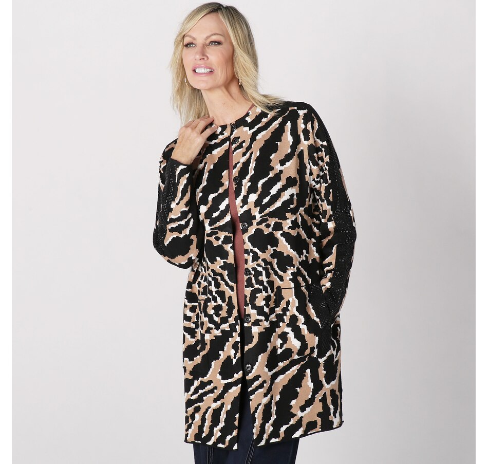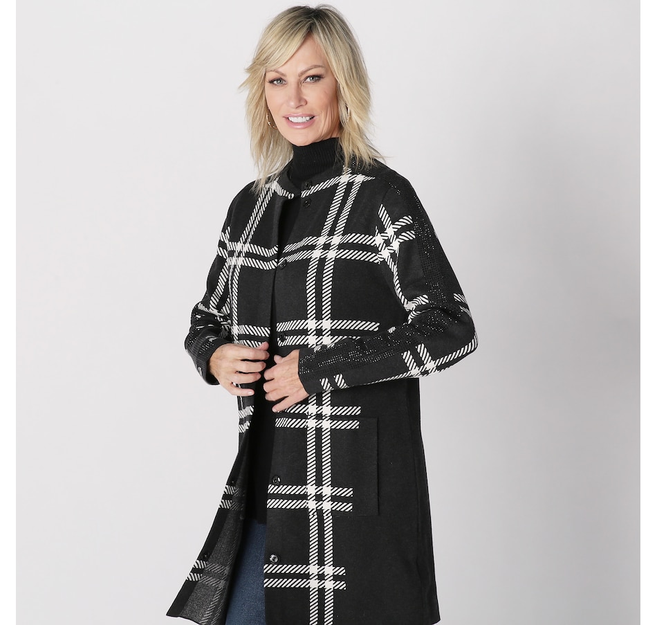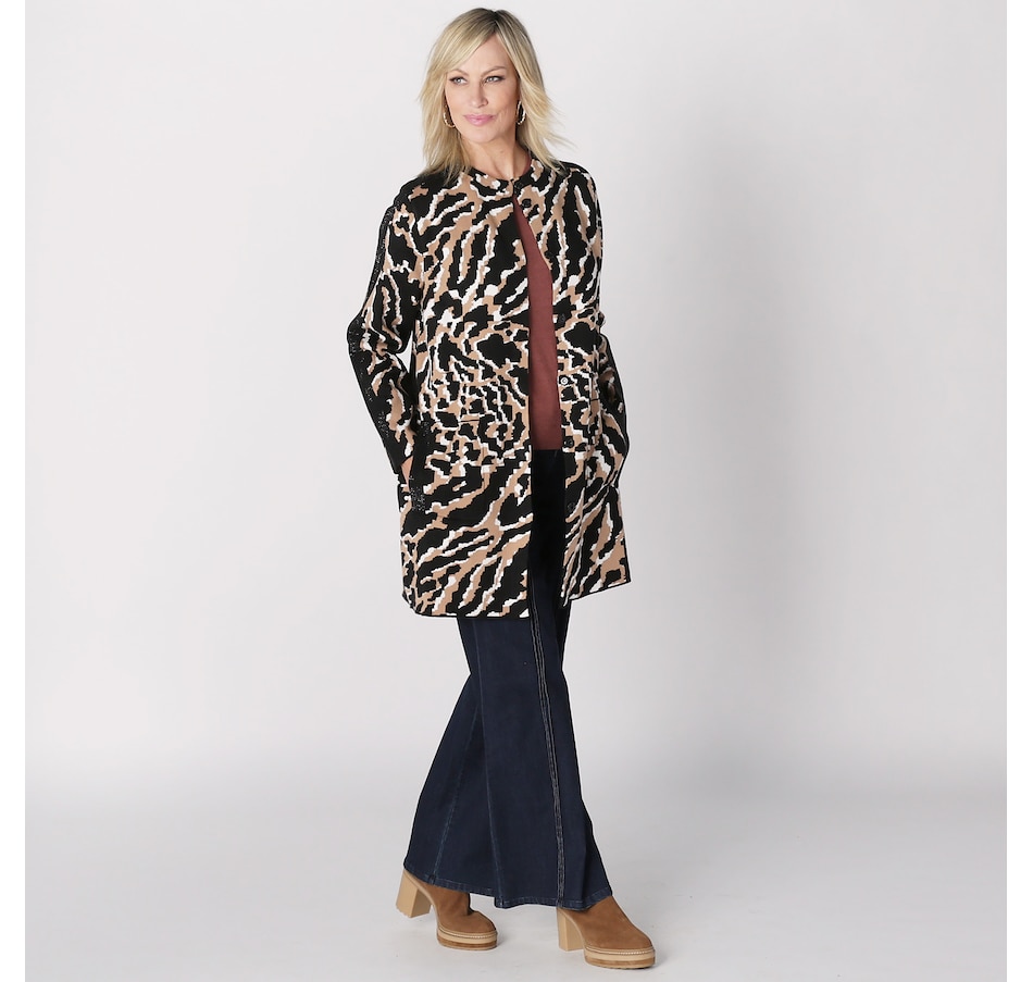 You'll be ready for the season with this fabulous beaded sleeve knit jacket from Canada's own Brian Bailey.