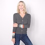 Colourful Button Front Cardi with Multi Stripe Cuff