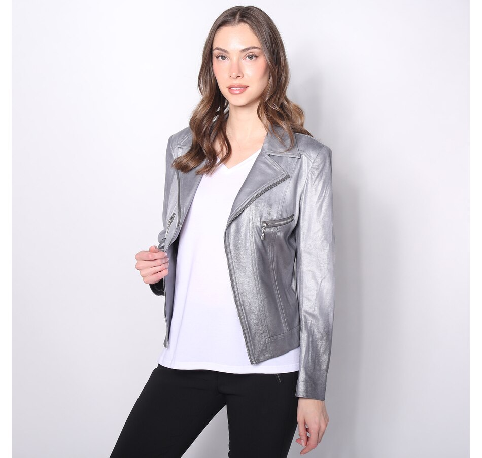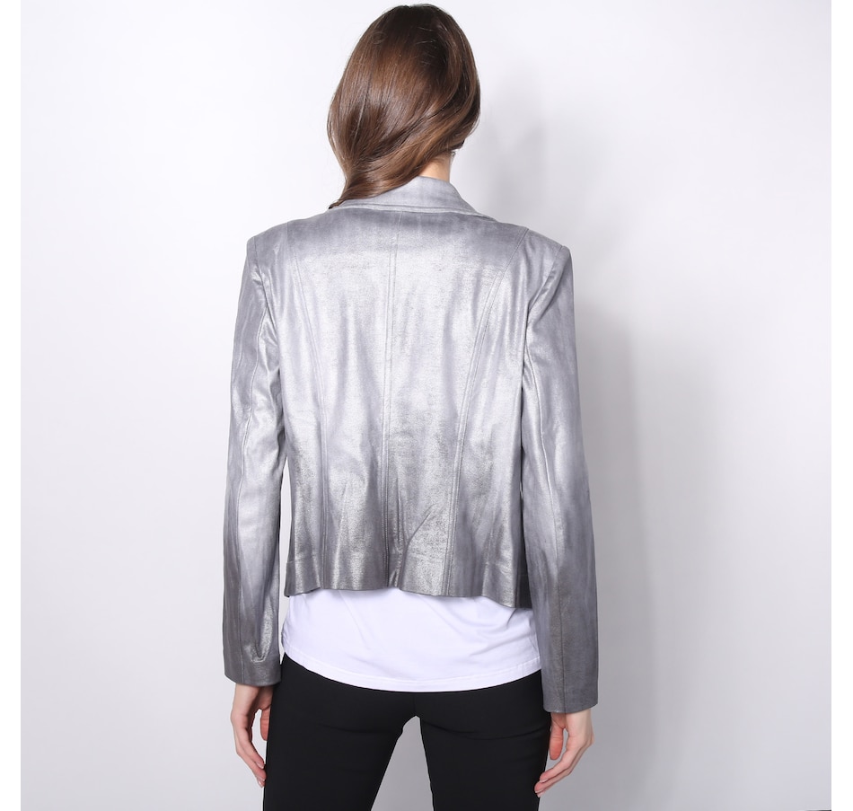 Finish your look in distinct, elevated style with this fabulous metallic jacket from Brian Bailey. Please note the zipper detail on this piece is not functional, and strictly for design only.