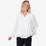 Add something exceptional to your ensemble wearing this puff sleeve fretwork blouse from Brian Bailey.