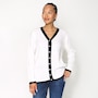 Beautiful and versatile, you'll centre every look with this sequin knit pearl button cardigan from Canada's own Brian Bailey.