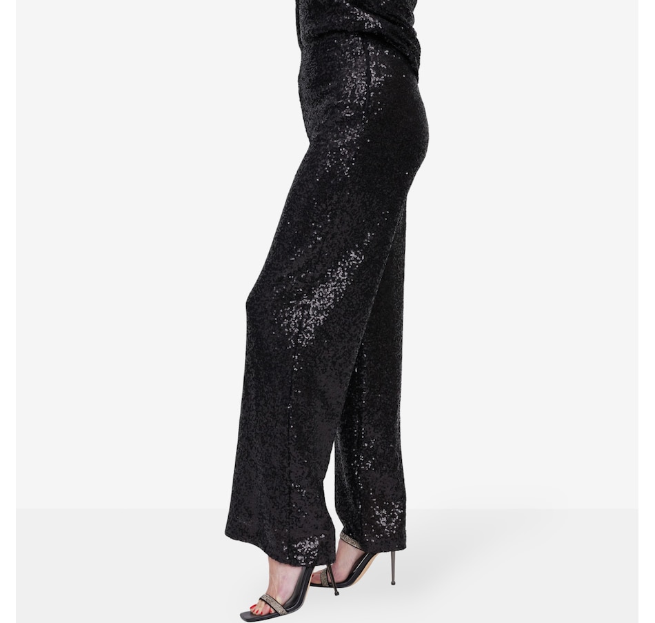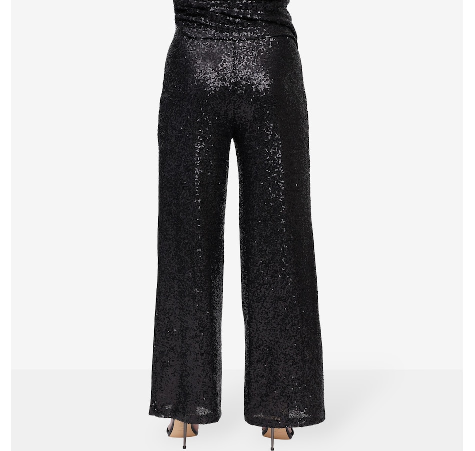 Slip into the spotlight with Brian Bailey’s black full-length sequin pant, a dazzling statement of effortless glamour. Designed with an all-over sequin finish that catches the light with every step, this pant blends comfort and sophistication. The mid-rise, relaxed fit flatters every silhouette, while the elastic waistband and zipper closure offer ease without compromising style. Whether you're dancing under city lights or sipping cocktails at a chic soirée, this pant promises to turn heads and spark conversations. Pair it with a sleek blouse or a bold blazer.