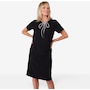 • Relaxed fit, lined, short sleeves, back zipper closure
