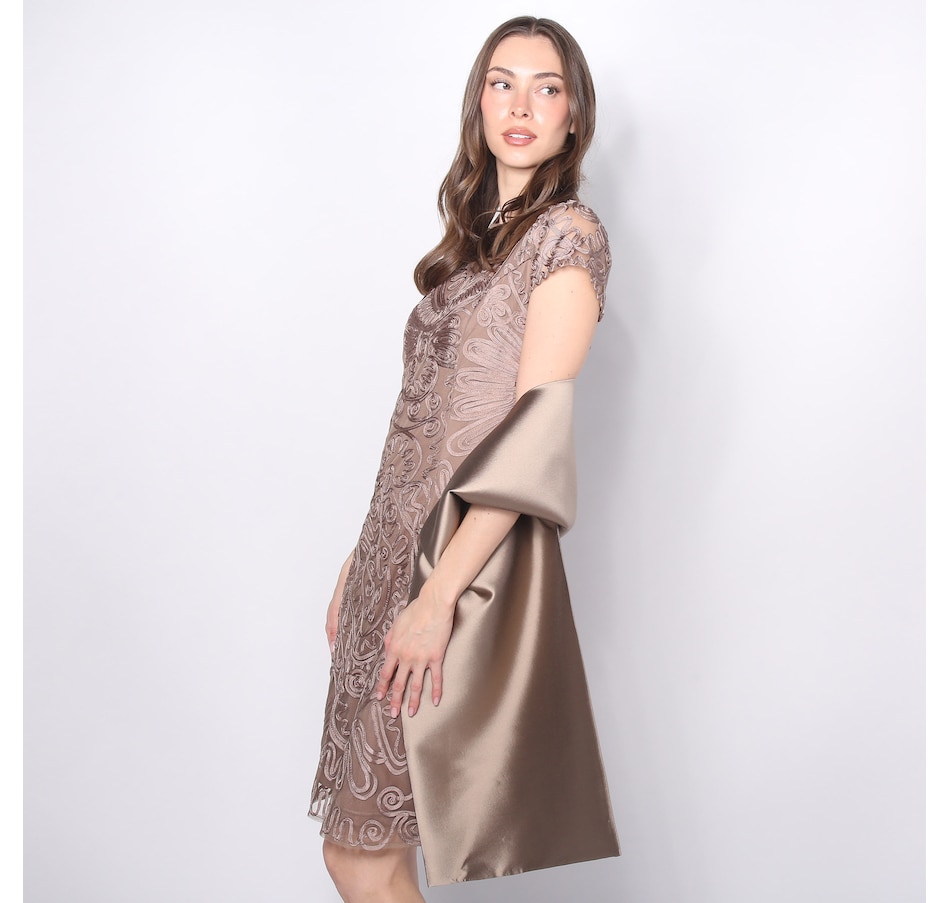 • Fabric: 87% polyester, 13% silk (light blue, pink, magenta, teal); 61% wool, 39% silk (mocha)