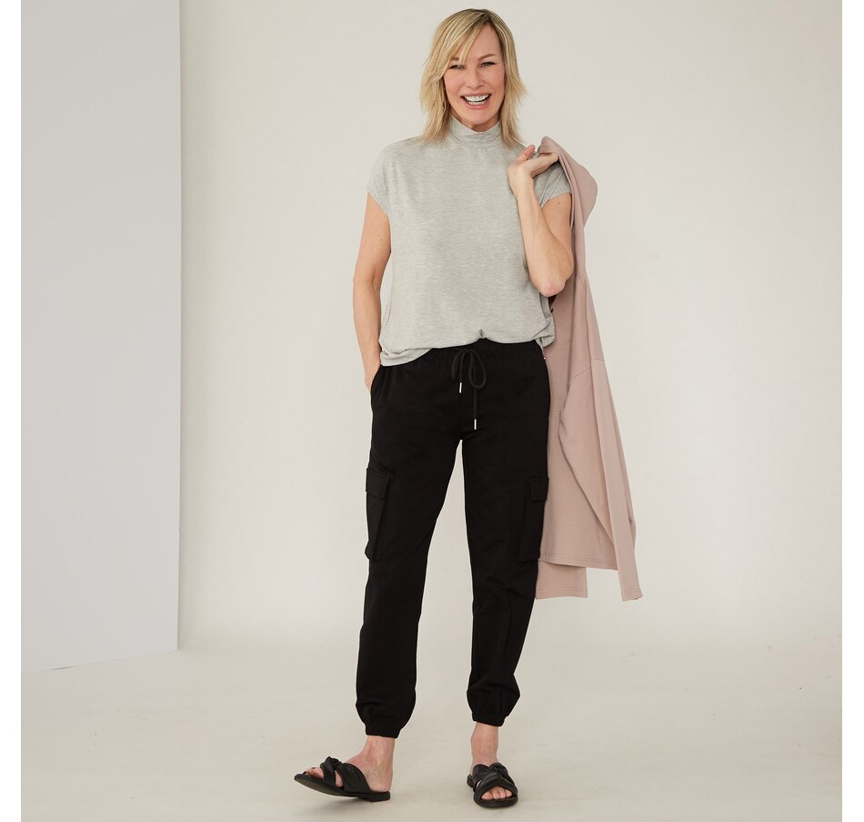 • Elastic, pull-on, mid-rise, relaxed