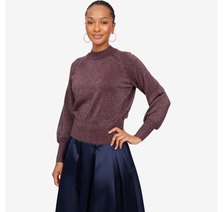 Wrap yourself in understated sparkle with Brian Bailey’s long sleeve pullover, a radiant essential for day-to-night elegance. With its high rounded neckline and tapered sleeve cuffs, this relaxed-fit piece offers a graceful silhouette and effortless charm. The pull-on design makes it as comfortable as it is captivating, shimmering subtly with every movement. Pair it with sleek black trousers or a satin midi skirt for a refined evening look, or dress it down with dark denim and ankle boots for a chic daytime ensemble. This pullover adds just the right touch of glamour to your day.