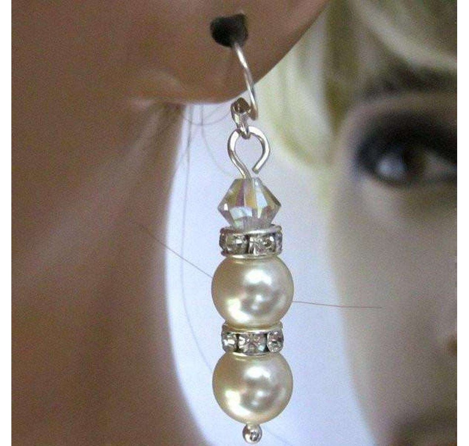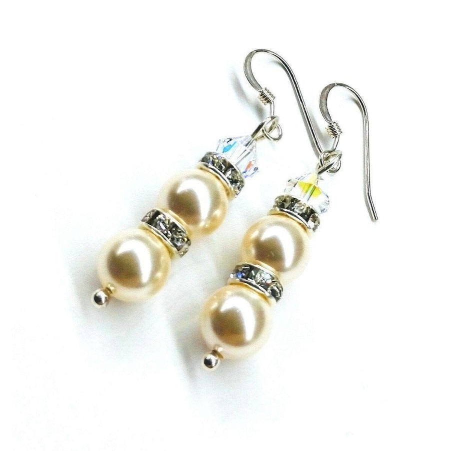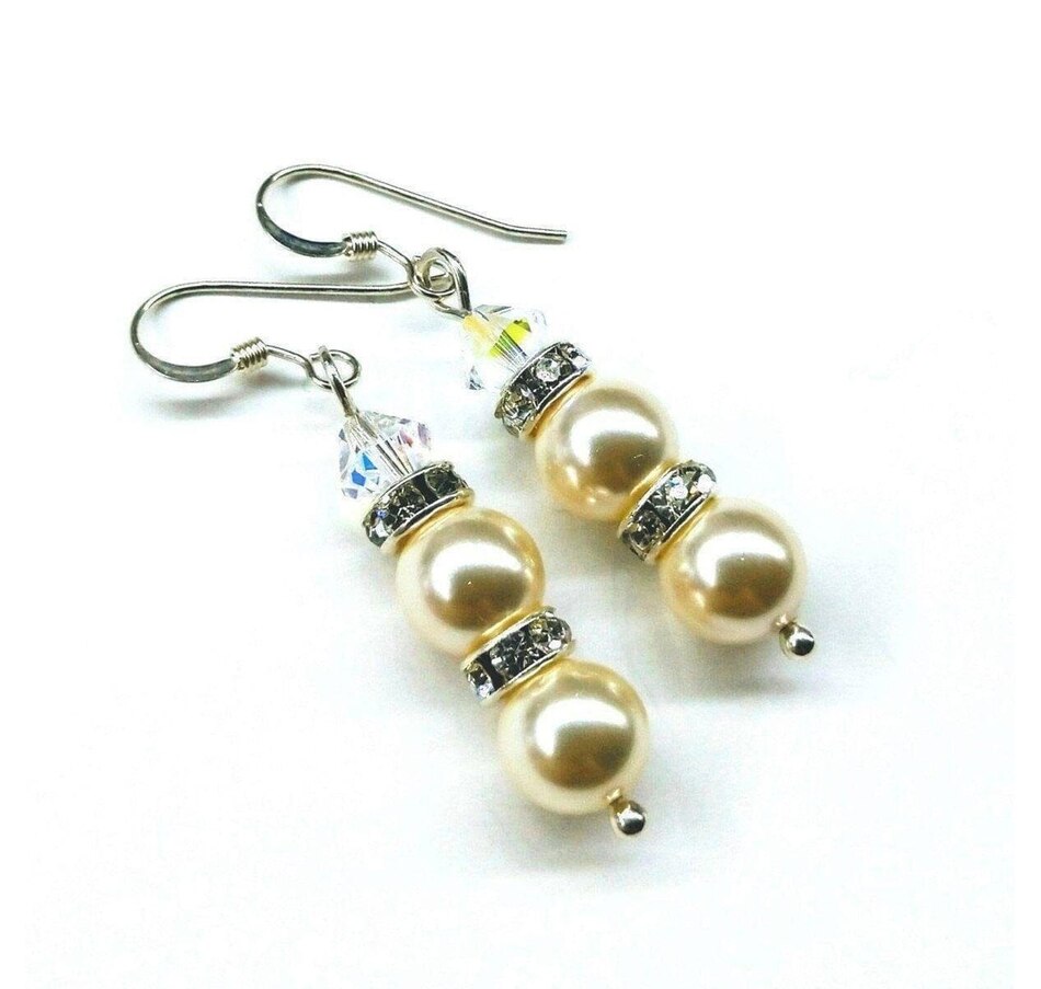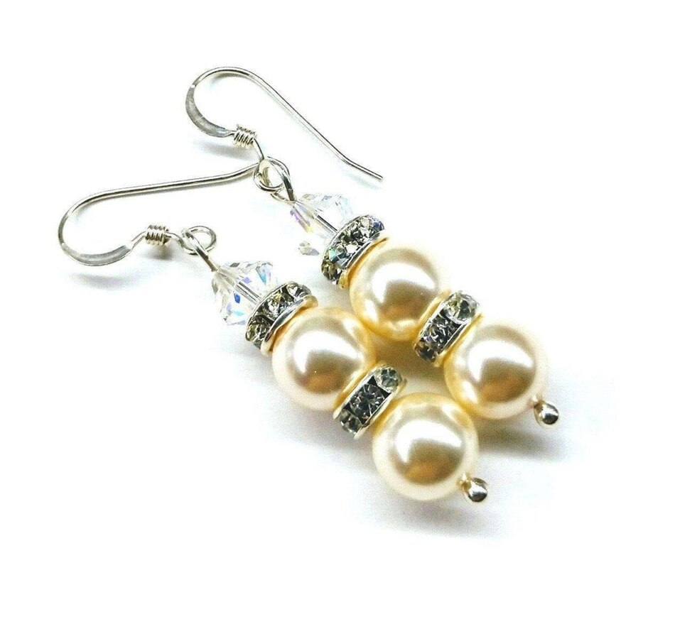 Adorn yourself with magnificence for your momentous affair by donning these divine, handcrafted Bridal Sterling Silver Stacked Crystal and Pearl Earrings. They're a thoughtful bridesmaid gift as well as an exquisite adornment for the bride!Sterling Silver Earrings6 mm Swarovski Crystal  Bicones AB6 mm Swarovski Crystal  Rondelles8 mm Swarovski Crystal PearlsEarrings Length is 1 1/2 inchesSS Flat Spiral Fish hook ear wiresWear it to many occasionsMade in Montana