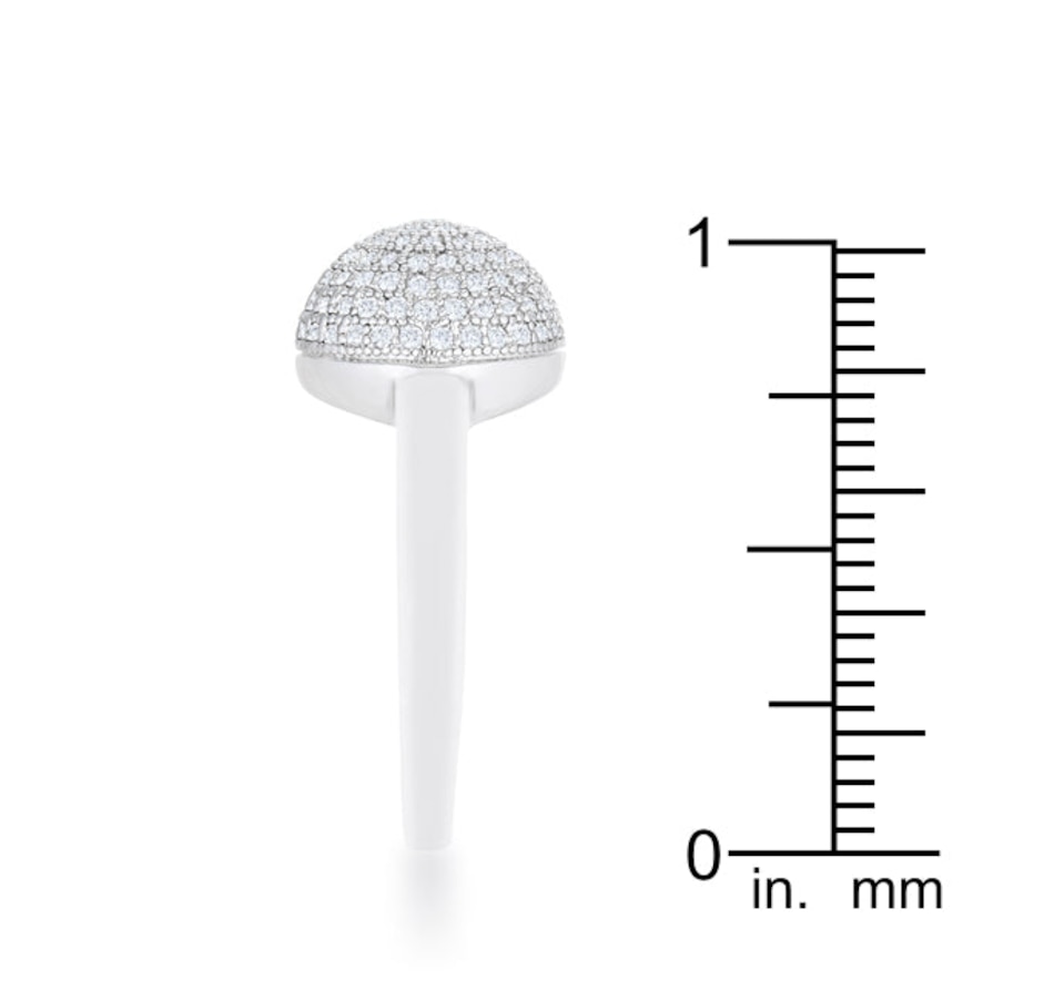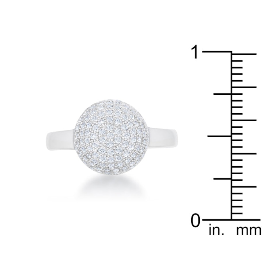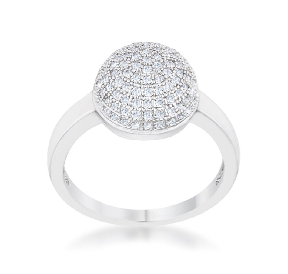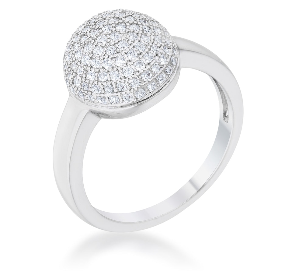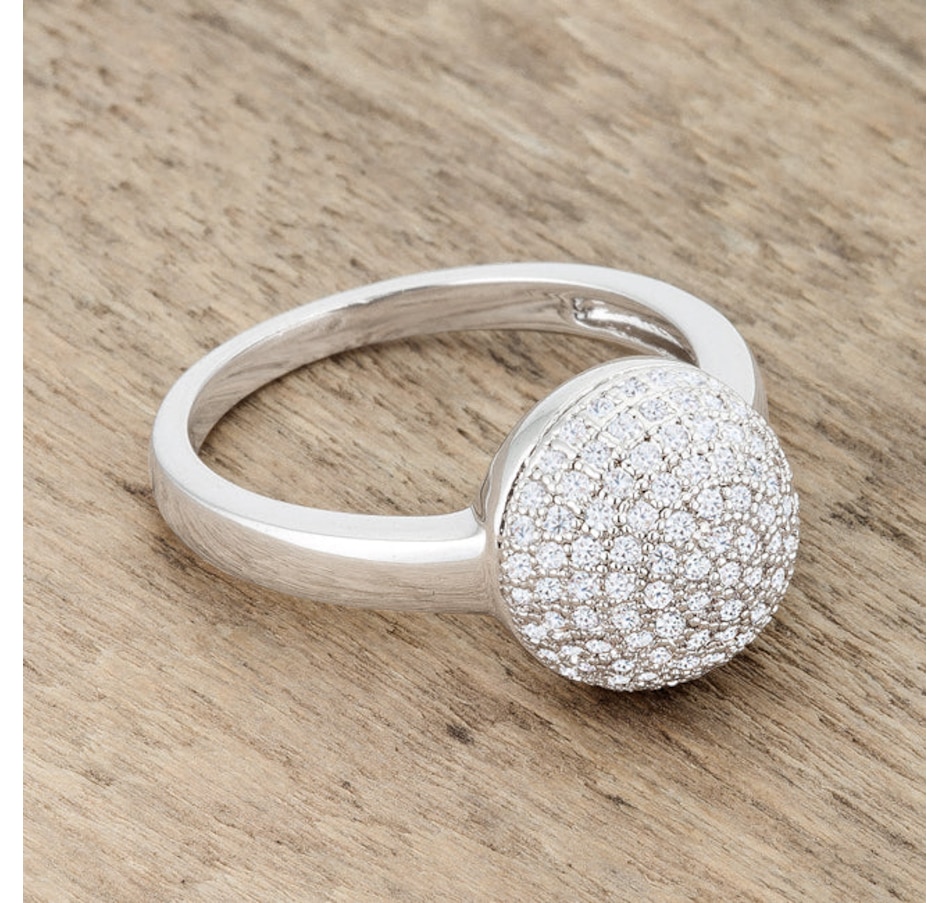 Small stones accent an sphere-shaped cocktail ring for a classically modern look.