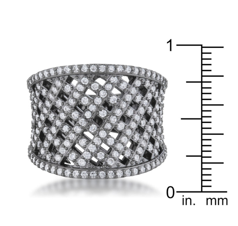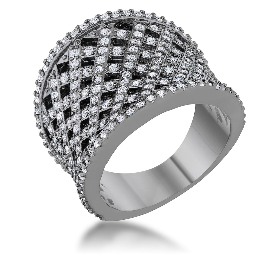 A woven wide ring design is accented with pave-set stones for a classic yet contemporary piece.