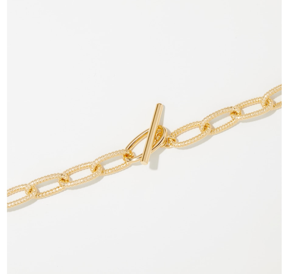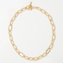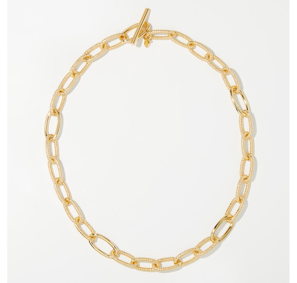18K Yellow Gold Plate Textured Oval Link Necklace With Polished Stations