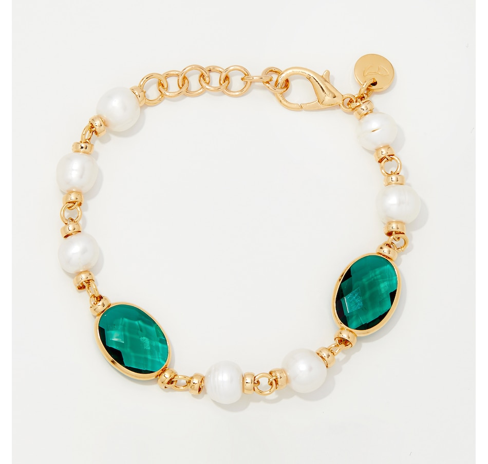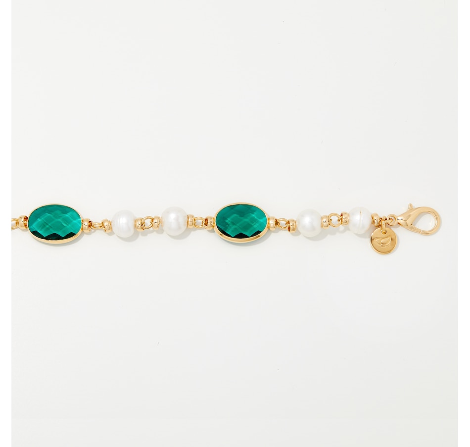 18K Yellow Gold Plated Green Crystals With Freshwater Pearls Bracelet
