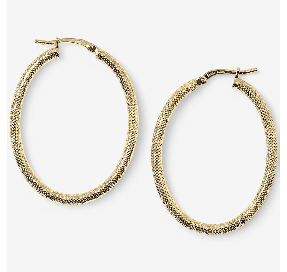 Yellow Gold Diamond Cut Oval Hoop Earrings