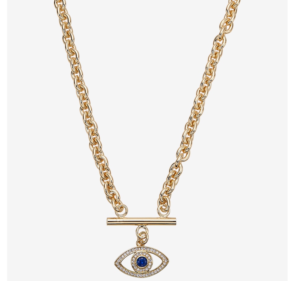 Yellow Gold Plate Cubic Zirconia Evil Eye On T-Bar with Chain