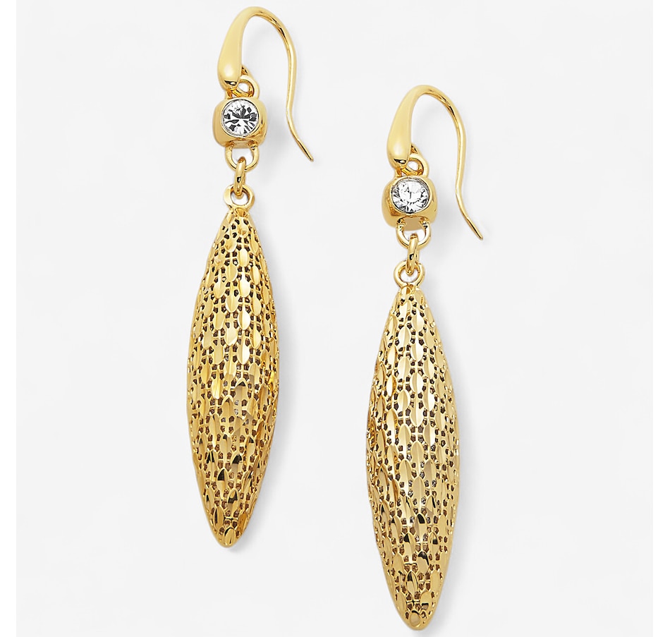 Yellow Gold Plate Diamond Cut Long Drop Earrings With Cubic Zirconia