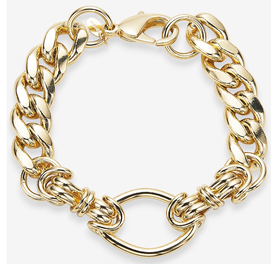 Yellow Gold Plate Heavy Curb Link Bracelet with Centre Oval Link