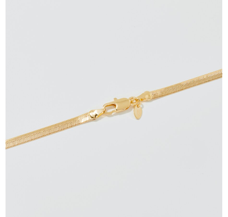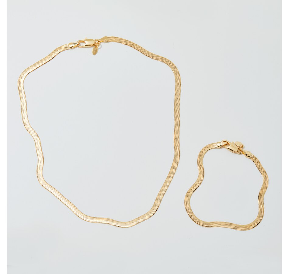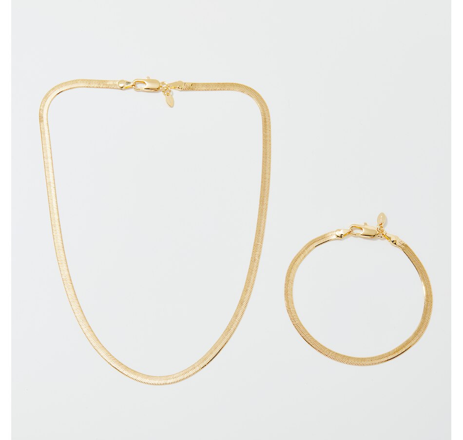 Yellow Gold Plate Herringbone Necklace Bracelet and Chain Set