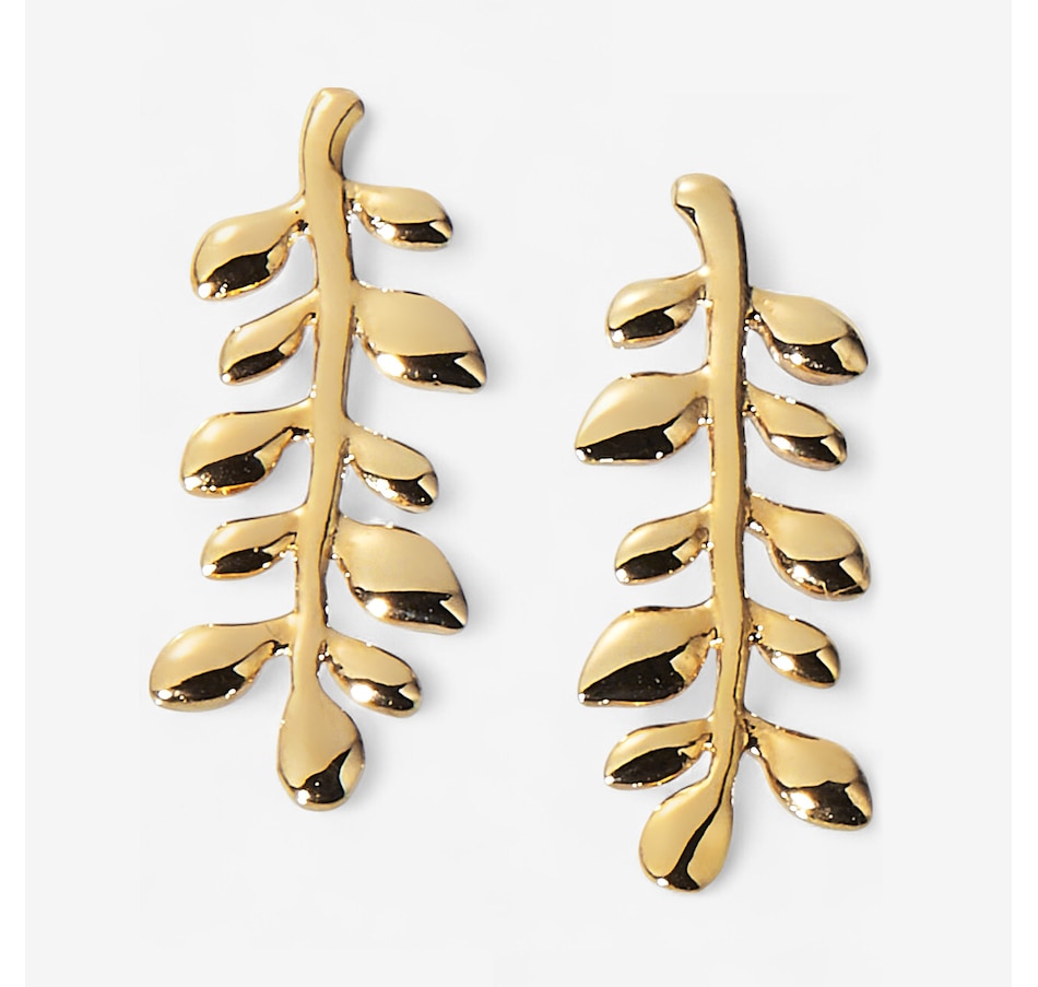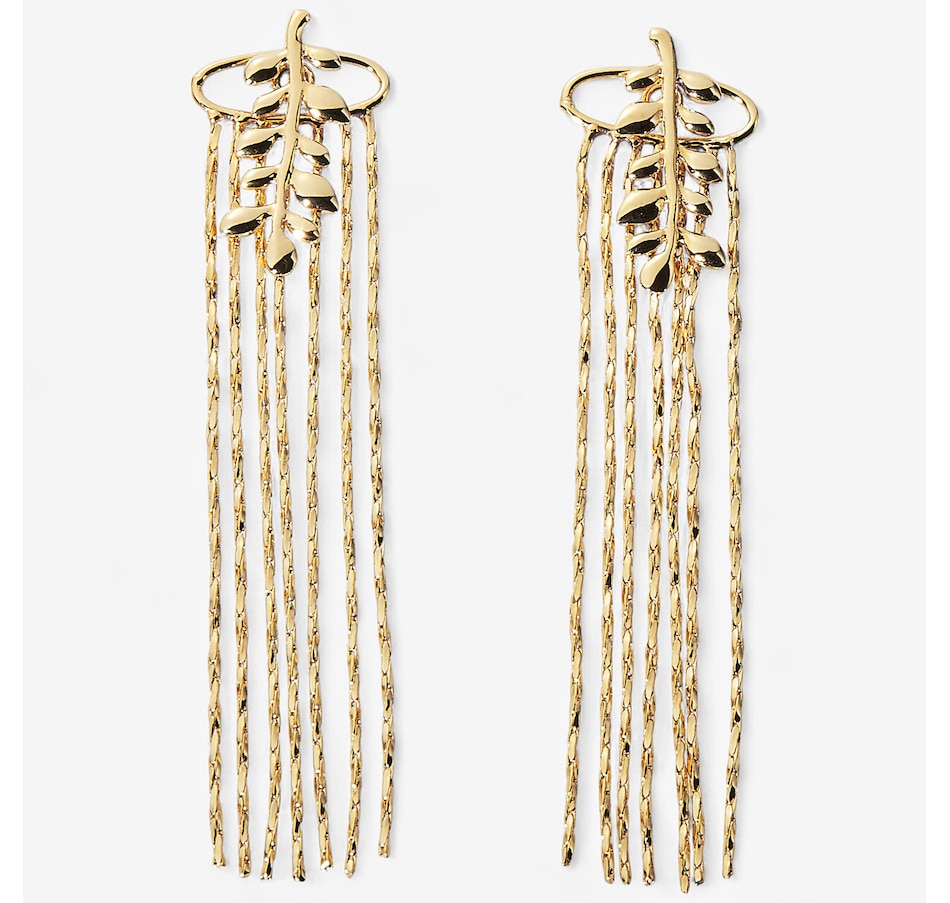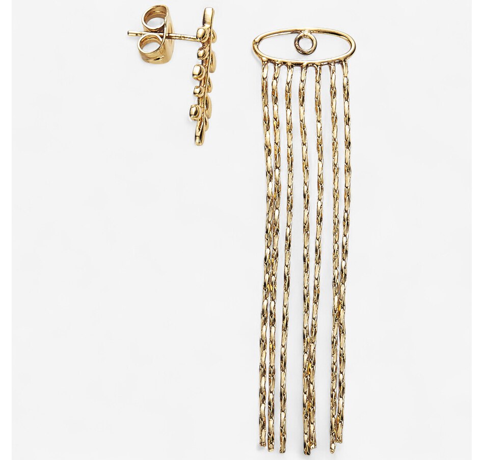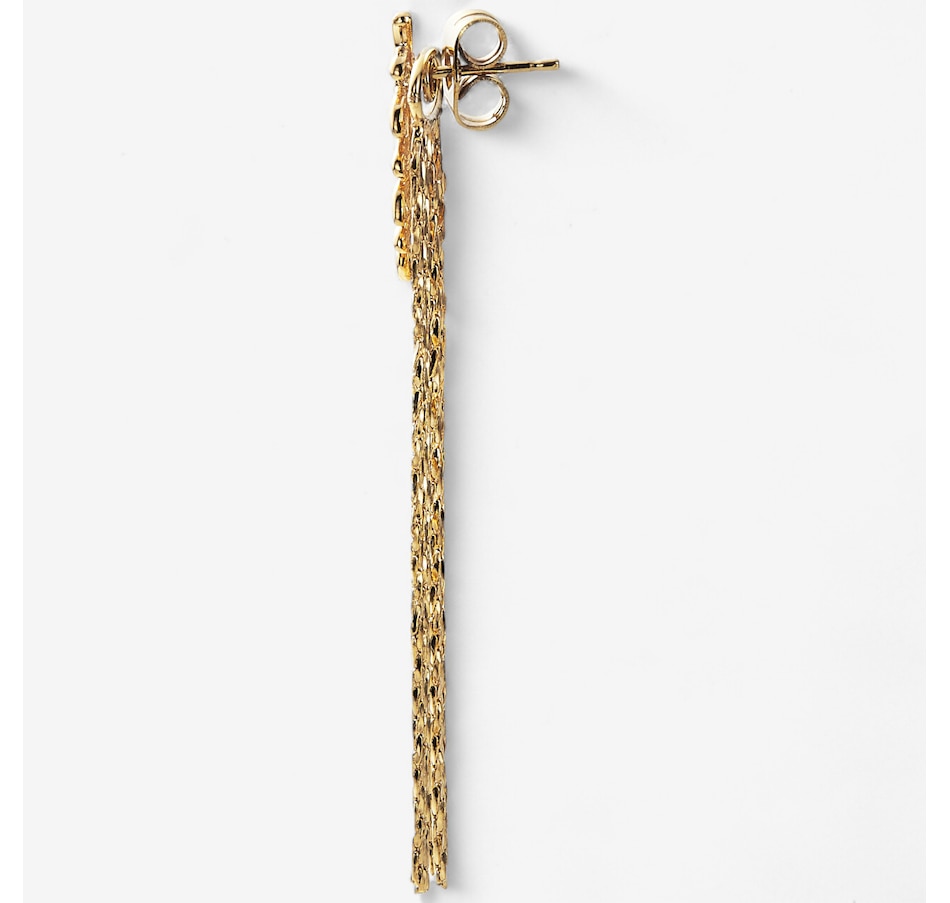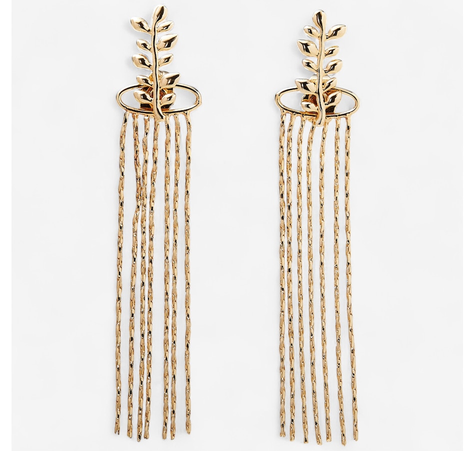 Bronzoro Yellow Gold Plate Leaf Studs With Multi Chain Jacket Earrings
