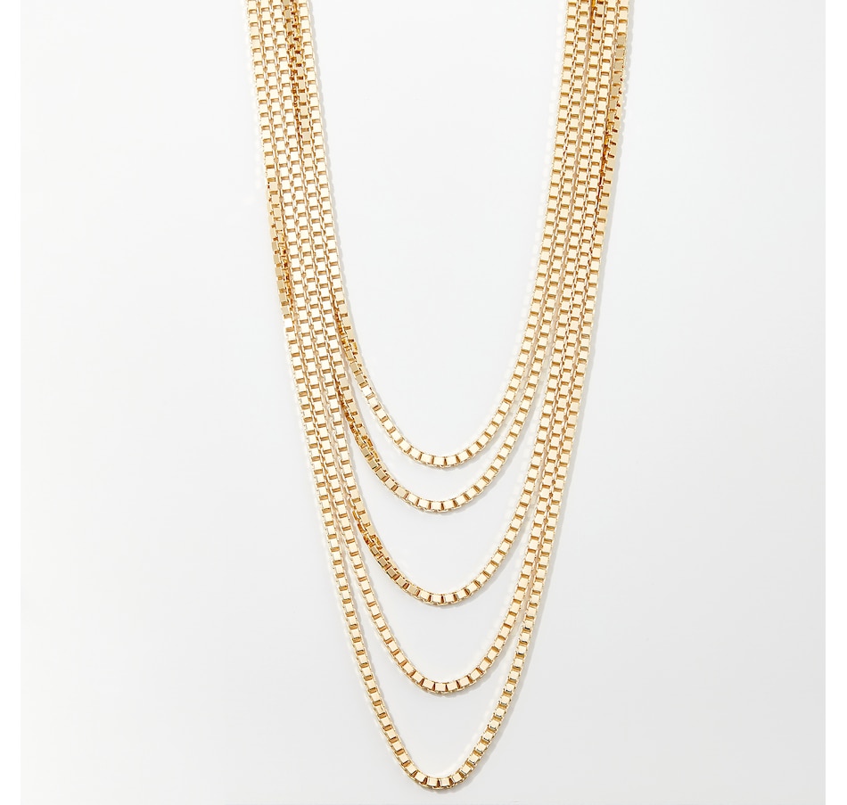 Yellow Gold Plate Multi Five Strand Box Necklace