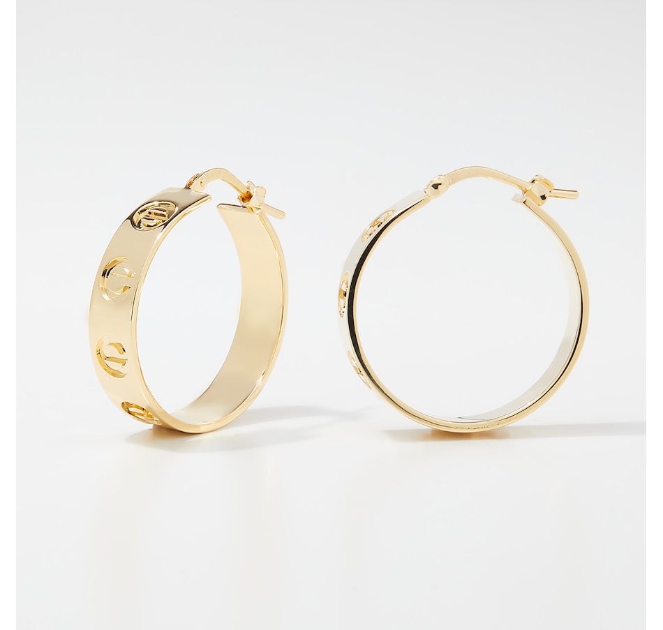 Yellow Gold Plated Screw Motif Hoop Earrings