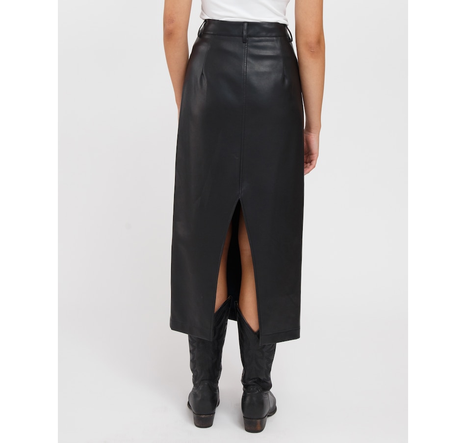 Classic and versatile, you'll elevate all your looks in sophisticated style with The Janis vegan leather skirt from Brunette The Label.