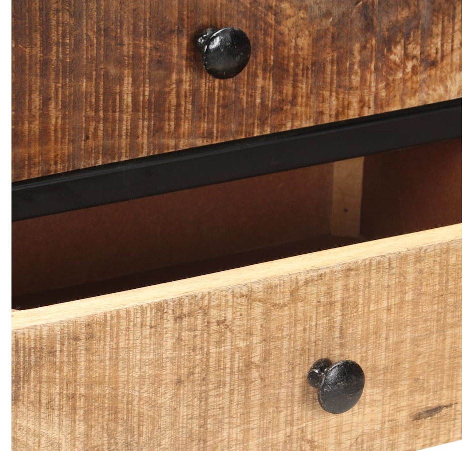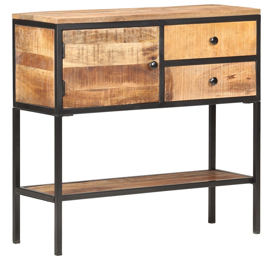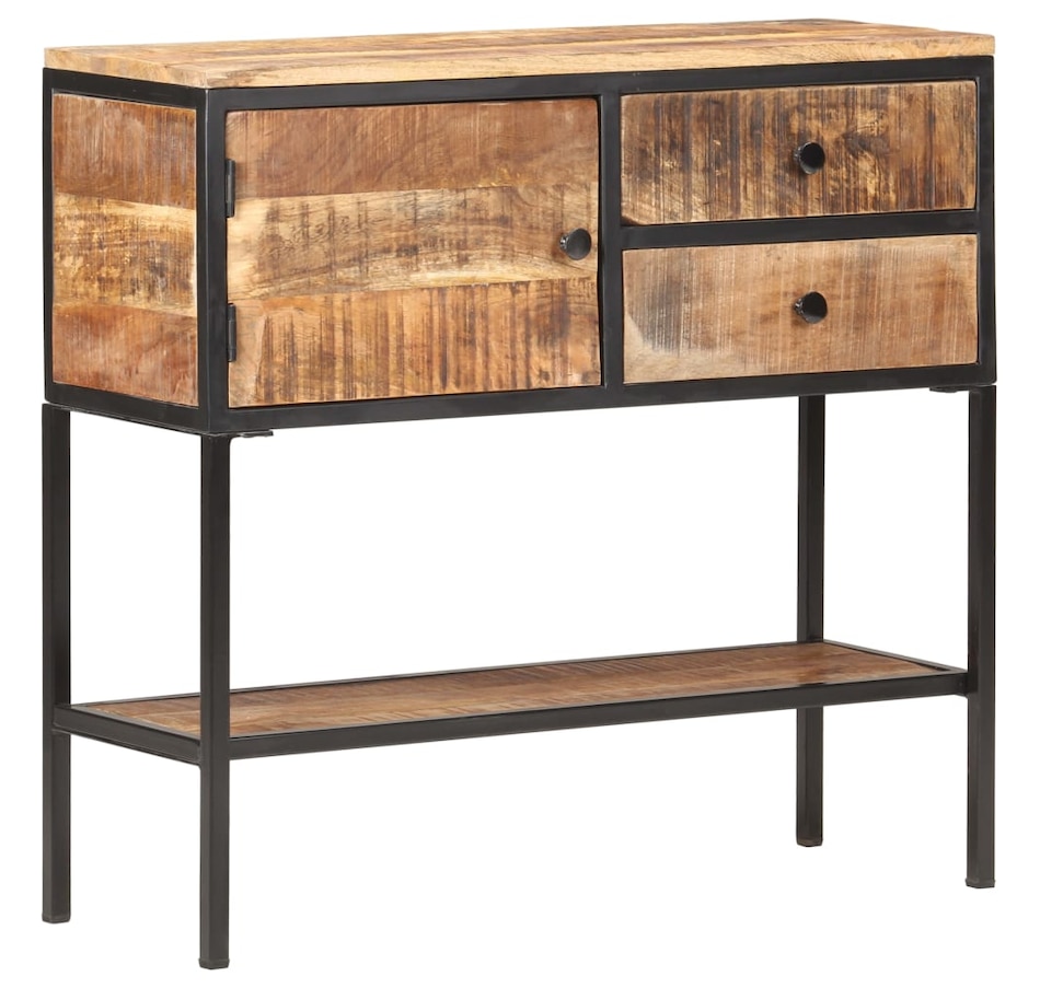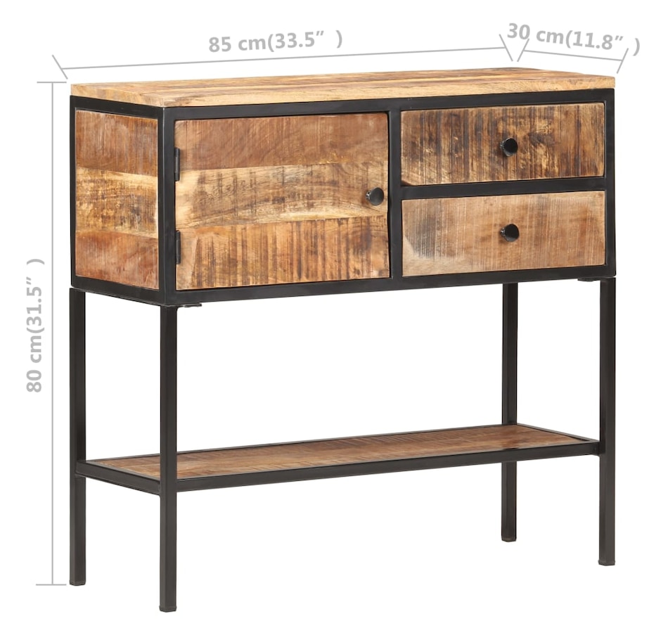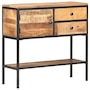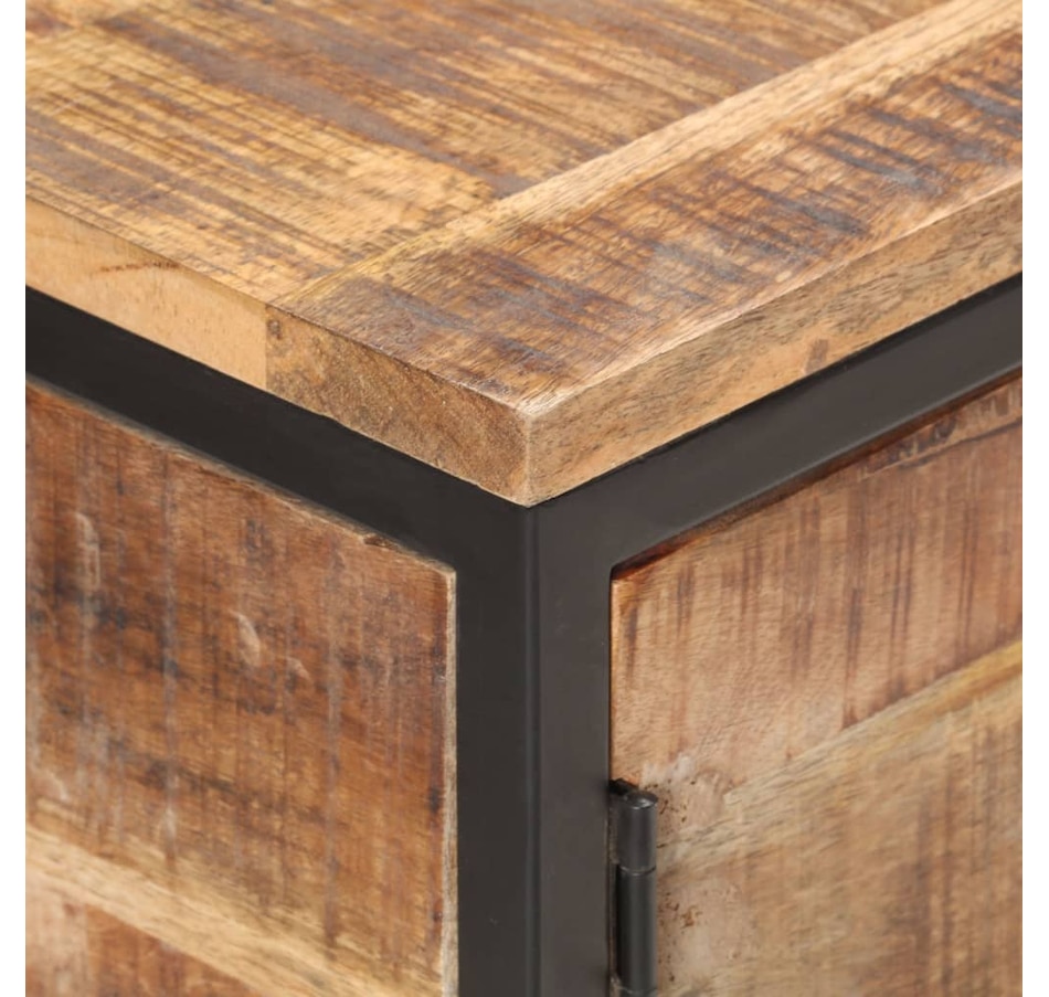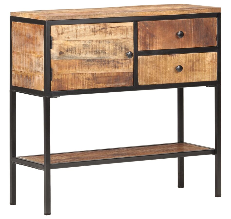 This wooden buffet adds an industrial appearance to your interior decoration. & Nbsp; The side cabinet is made of raw mango wood with a natural finish, a hard tropical wood with the force to support the weight. It also resists the wear and tear of time, which makes it stable and durable. The know-how and the beautiful veins of wood make each unique and slightly different furniture from each other. The black iron frame coated with powder gives it additional stability. It has a door, two drawers and a lower tablet offering a lot of storage space. In addition, the robust top is ideal for displaying decorative objects such as photo frames, pot plants, vases, etc. & nbsp; important remark: colors and grains can vary from one room to another, making each piece unique; Delivery is random.