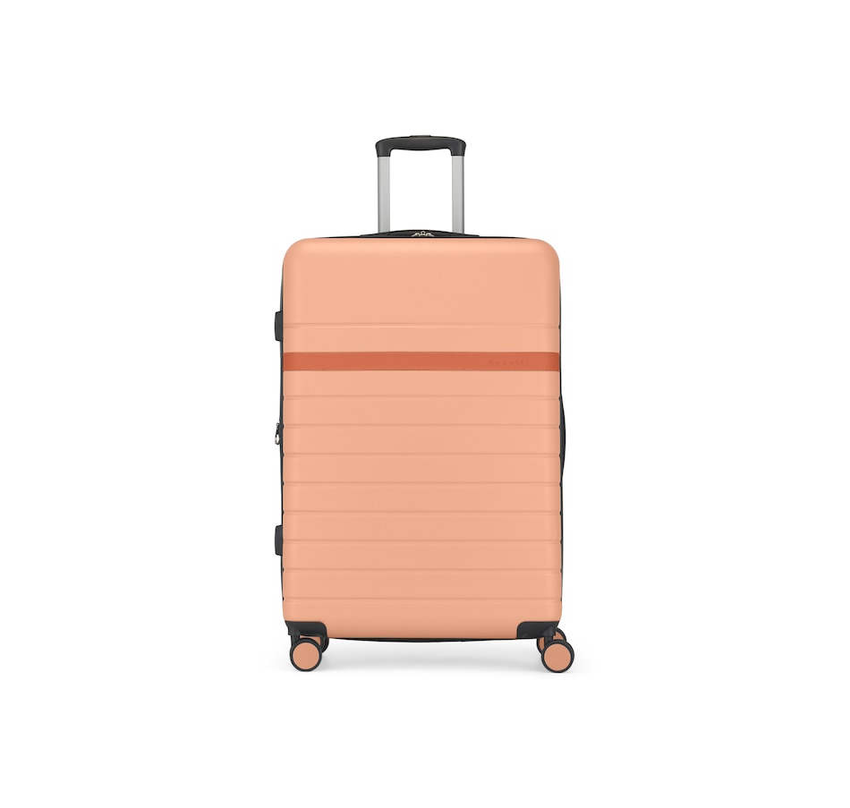 • Our suitcases feature a signature lined interior, complete with a dividing panel and tightening straps, ensuring your belongings stay secure.