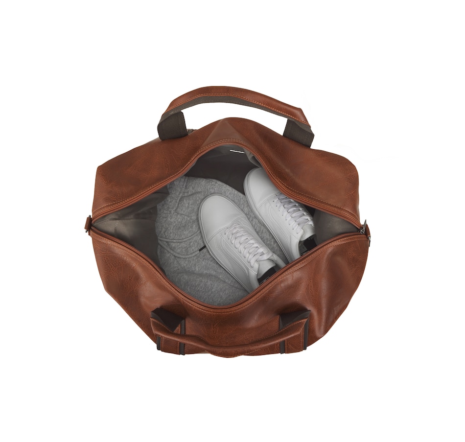 Made with high-quality vegan leather and canvas trim, this duffle stylish and environmentally friendly.