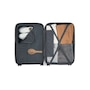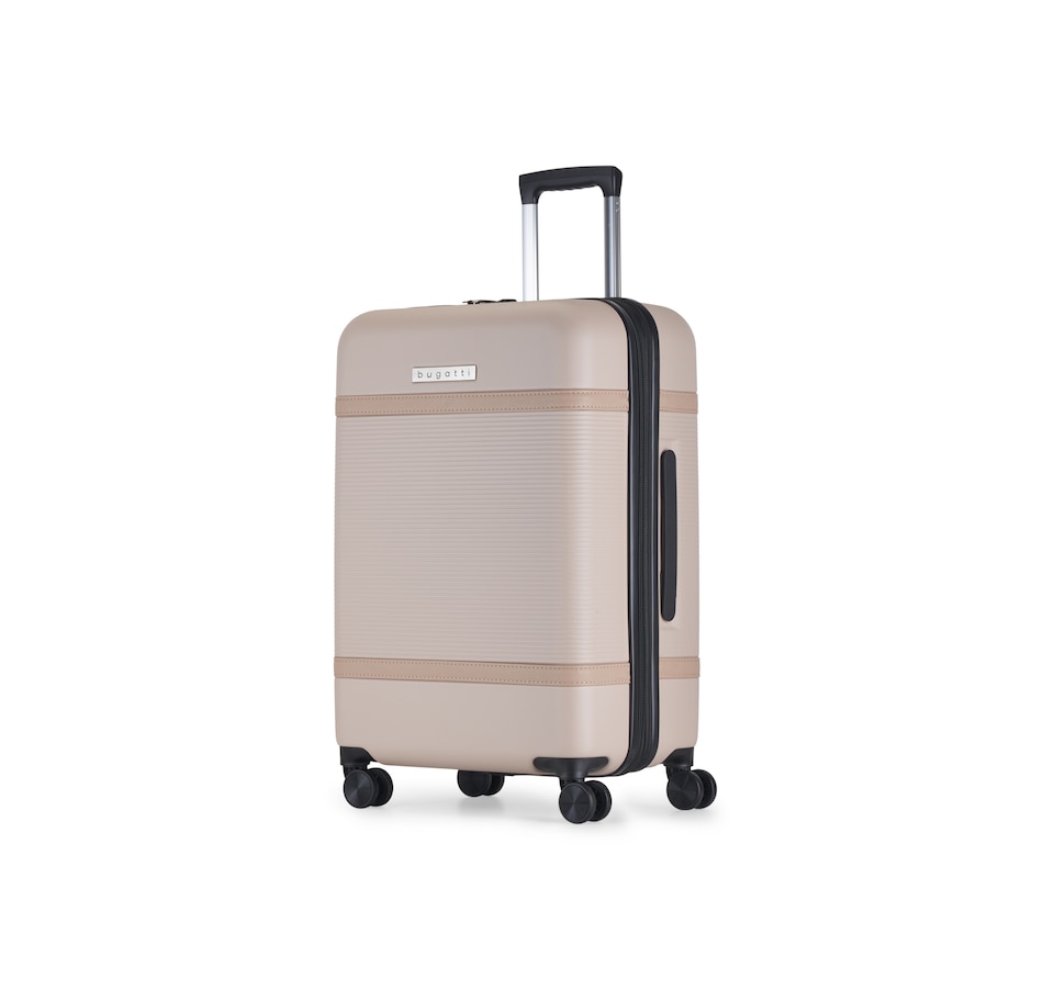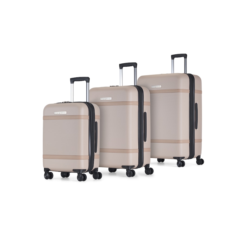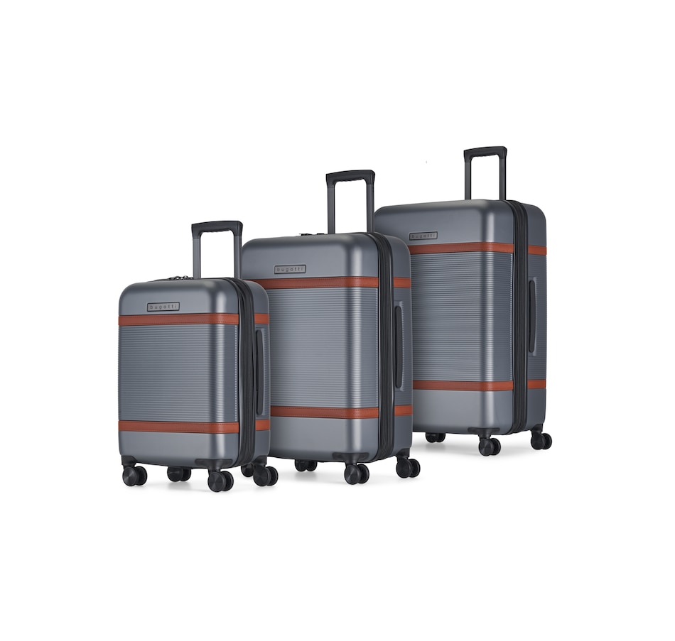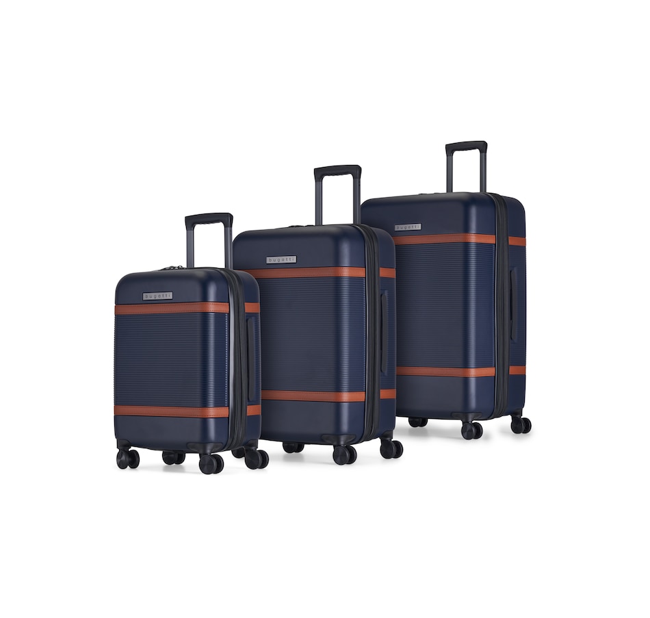 Embark on your next journey with the durable and stylish Wellington collection from Bugatti. Crafted from lightweight ABS with chic vegan leather trims, these luggage pieces are designed for longevity. The Wellington collection offers smooth maneuverability with a telescopic trolley handle that locks in two positions and 8 spinner wheels for 360° movement. With expandability, heavy-duty zippers, and a TSA combination lock, your belongings are secure and organized with an interior featuring a dividing panel, three tightening straps, and multiple pockets. This set is perfect for all your travel needs.