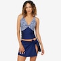 • High-rise cut, full coverage, wrap overlay skirt, shape-enhancement fabric (front), double-fabric layer (back)