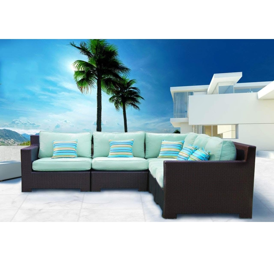 Provence Outdoor Patio Wicker Rattan Modular Corner Sectional Sofa in Blue