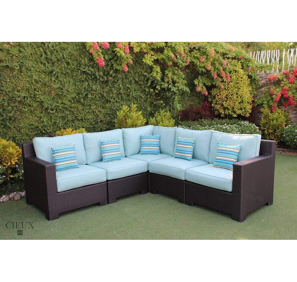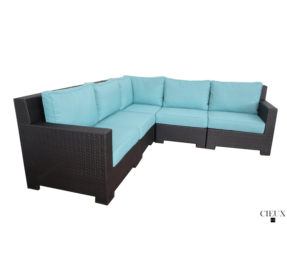Inspired by the coastal Mediterranean region of southeastern France, the Provence Corner Sectional by CIEUX will bring a breezy essence to your backyard patio or lanai. This outdoor modular design consists of a corner chair, a left and right arm chair, and two armless chairs, which are lightweight and can be custom configured to fit your space. Each piece is constructed with premium quality flat resin wicker in a dark chocolate finish, and hand-woven onto a sturdy powder-coated aluminum frame. Plush seat and back cushions are included, in high-end outdoor performance fabric, which is mildew and stain resistant, water repellent, and UV resistant to ensure the colours stay bright. All materials can be easily cleaned using warm water and mild soap for low-maintenance care and lasting durability. Relax in romantic and sophisticated comfort and style this summer while you enjoy a glass of chardonnay in the company of loved ones with an echo of the salty cerulean sea resonating all around you.