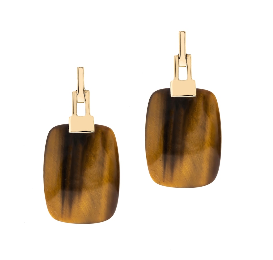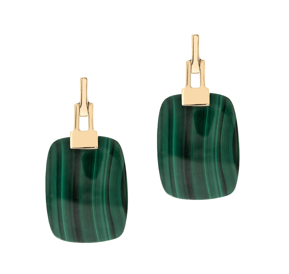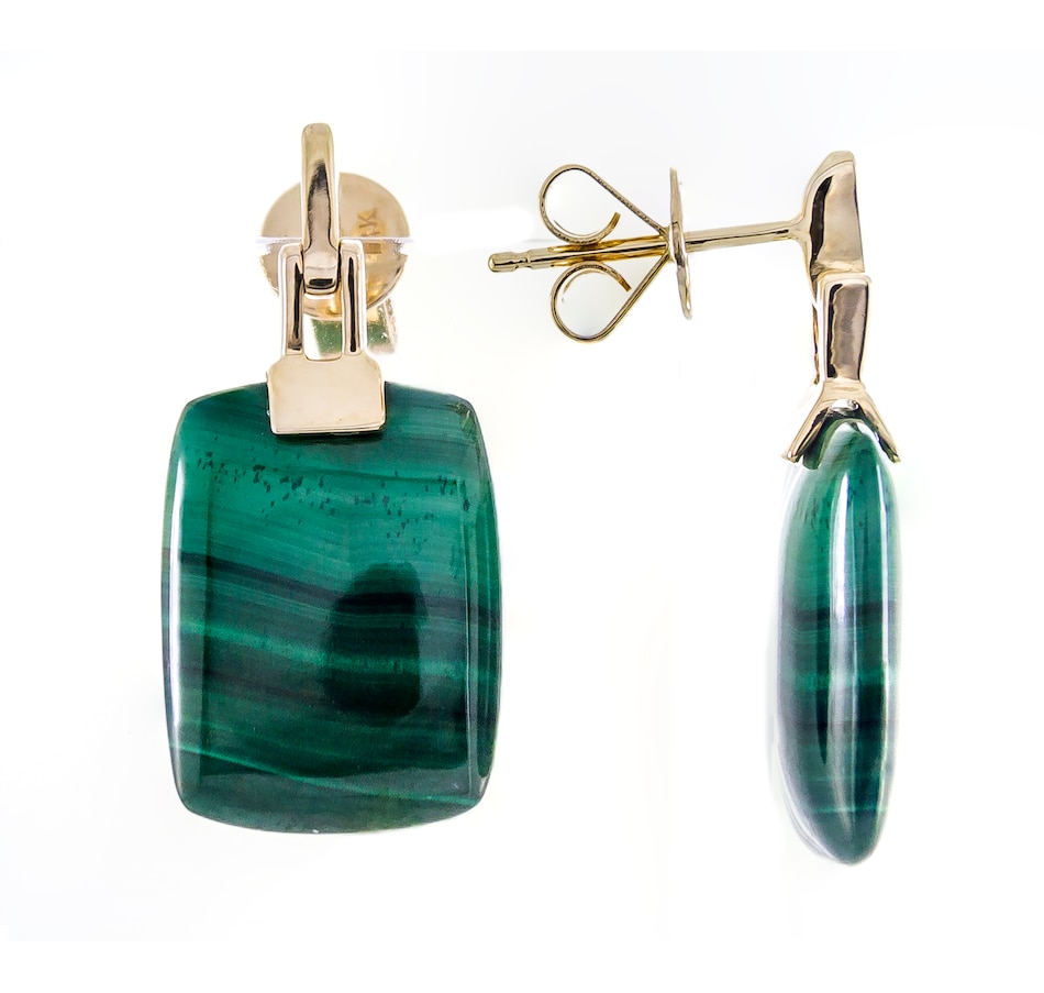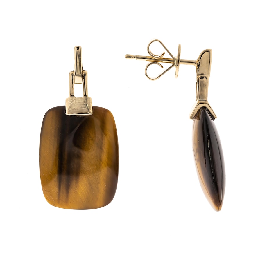 • (2) 12mm x 16mm cushion cut choice of gemstone: 20.97 av. ctw (malachite), 15.01 av. ctw (tiger eye)