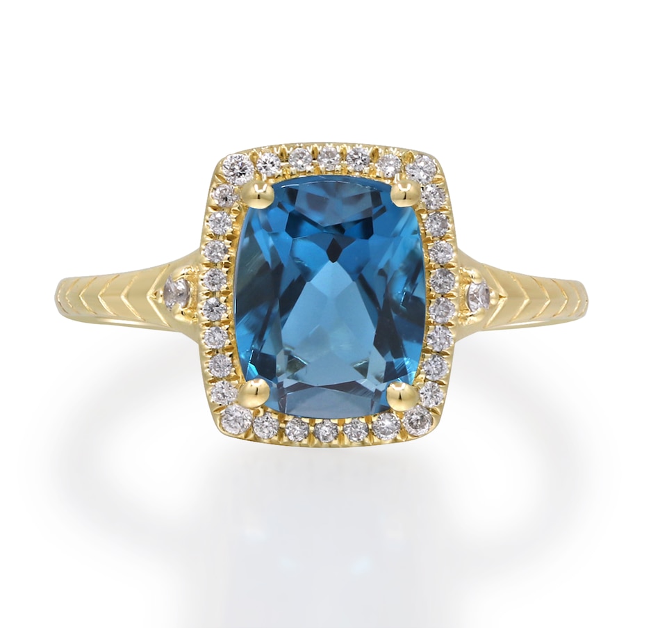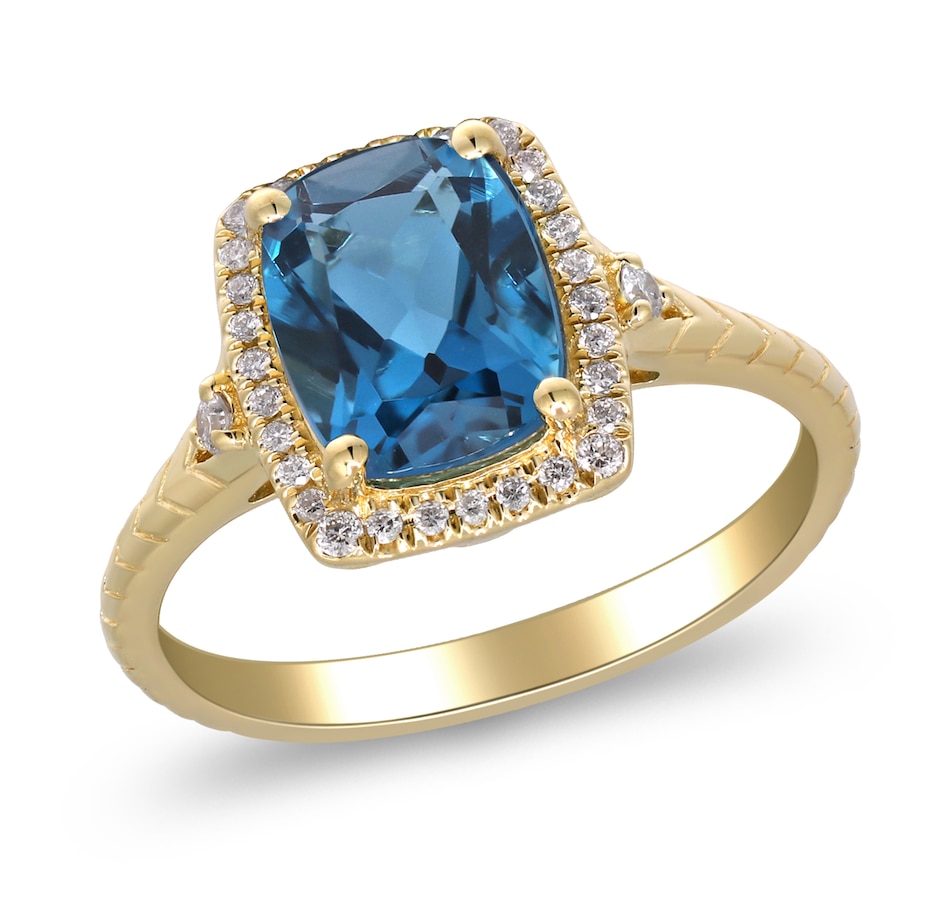 • (1) 9mm x 7mm cushion shape, prong set and faceted London blue topaz (2.375 av.ctw)