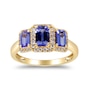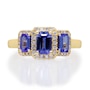 • (2) 5mm x 3mm, (1) 6mm x 4mm emerald cut, prong set and faceted tanzanite (1.238 av.ctw)