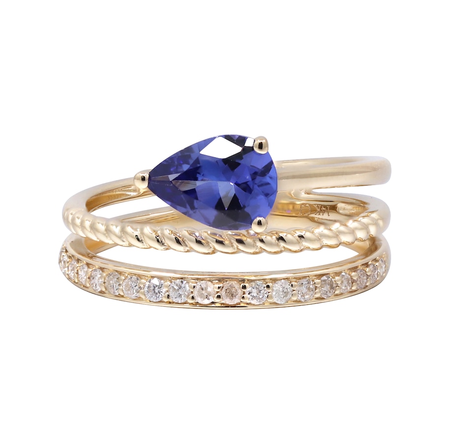 • (1) 8mm x 6mm pear shape, prong set and faceted tanzanite (1.074 av.ctw)