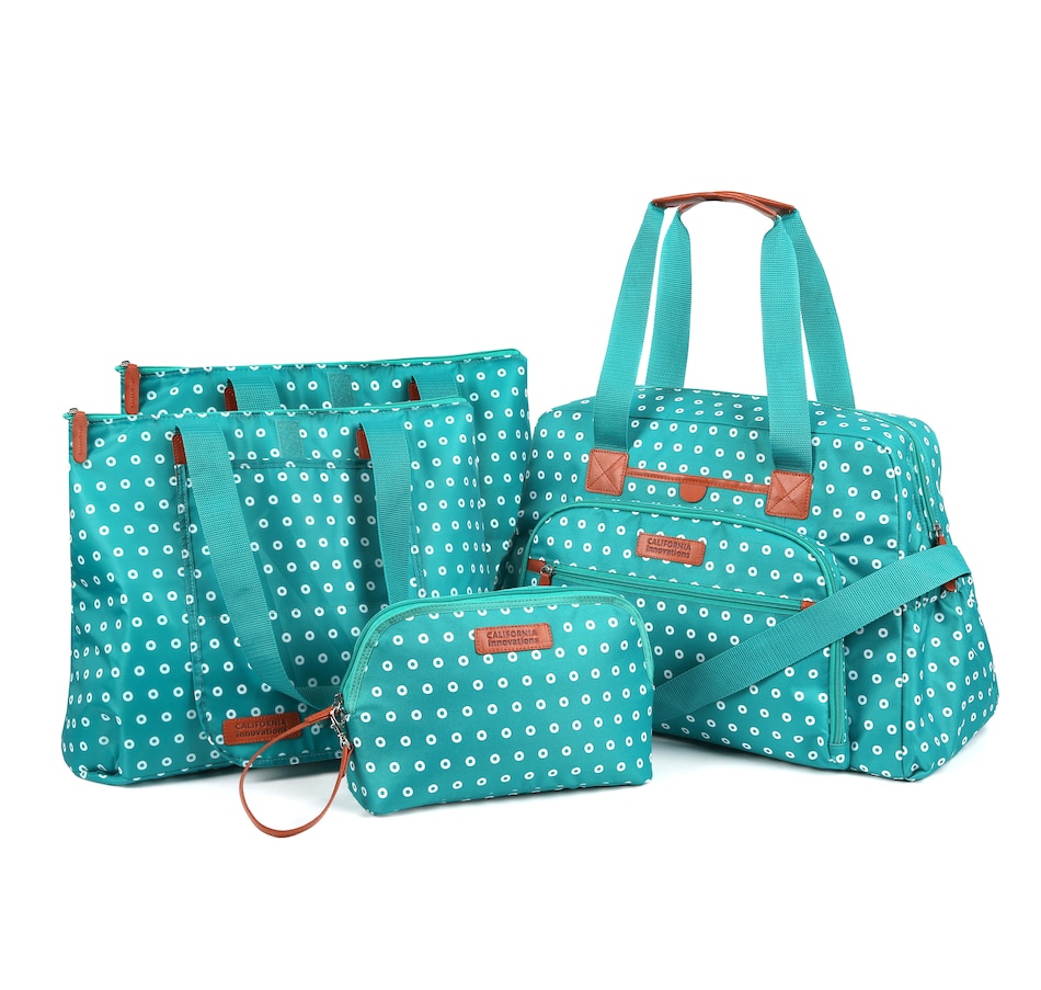 • Dimensions: 19.75" x 11.5" x 12.75" (duffel tote); 17.5" x 6.9" x 13" (market totes); 10.75" x 3.9" x 6.9" (pouch)