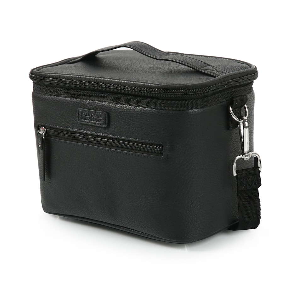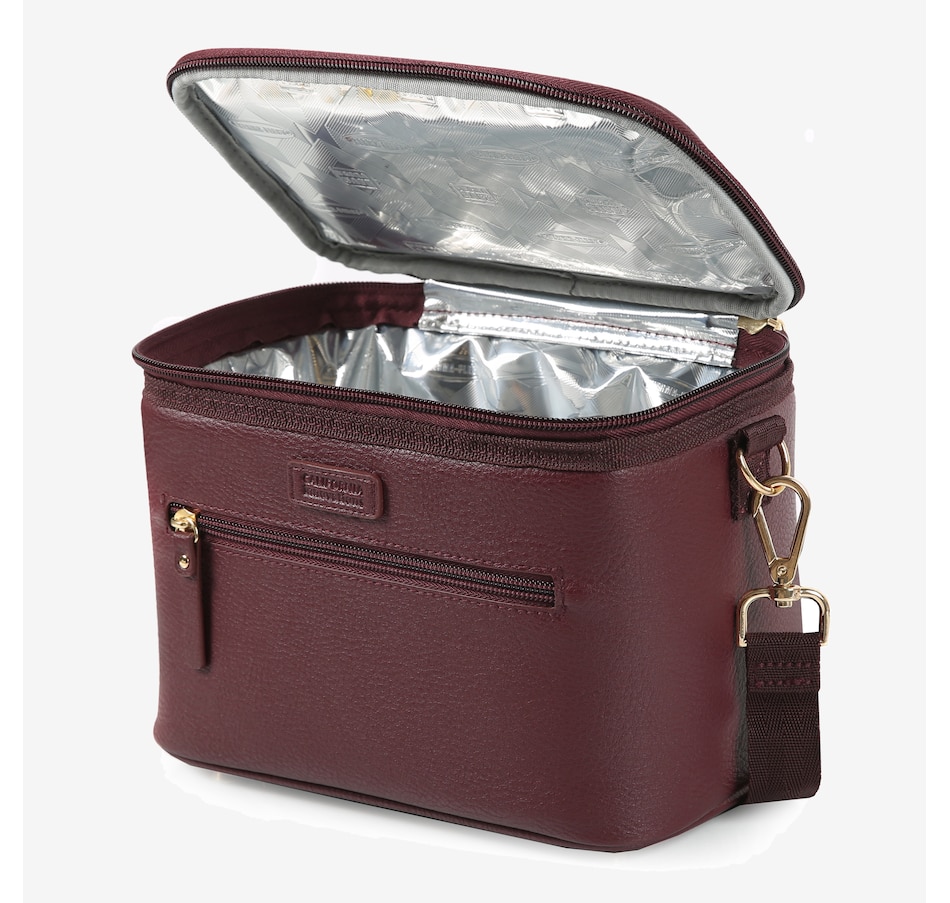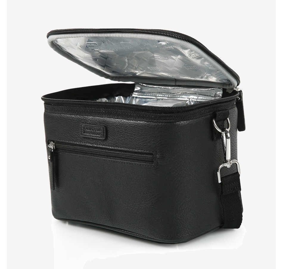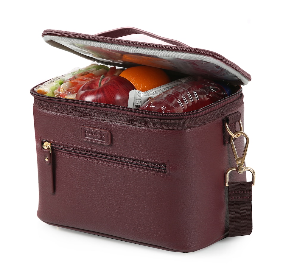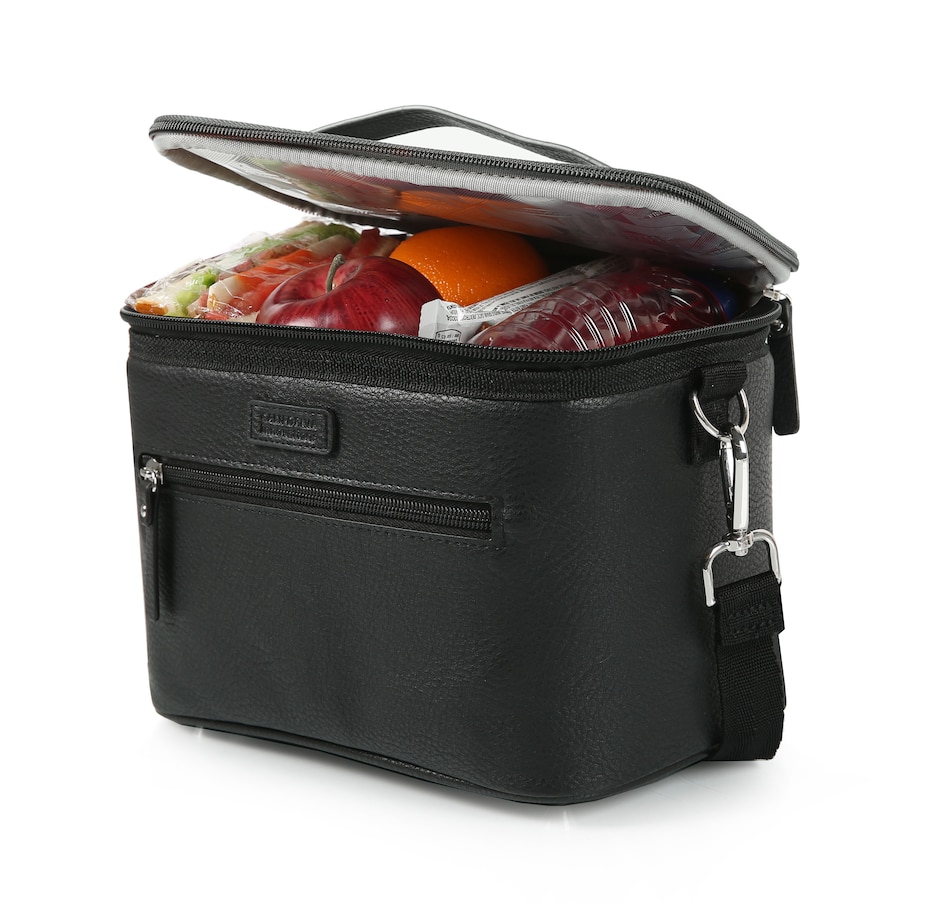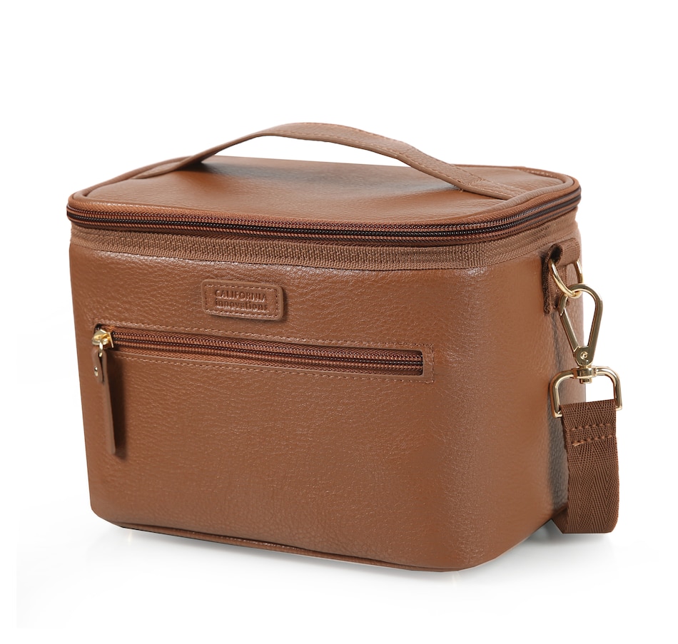 This faux leather insulated lunch tote from California Innovations is not only stylish but also highly functional. The large, easy-to-load main compartment interior is constructed with SuperFoam insulation, designed to keep your food cold and fresh for extended periods. It also features a Therma-Flect radiant barrier interior and ultra-safe leak-proof lining protected with Microban technology to help absorb and/or neutralize odours, so you don't have to worry about spills or messes in your bag. This easy-to-clean lining is not just practical but also hygienic. The exterior of the lunch tote is also designed with your convenience in mind, featuring a zipper pocket for easy access to your essentials, a carrying handle for quick grab-and-go, and a removable, adjustable shoulder strap for comfortable carrying.