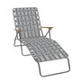 The Web Chaise Lounge with hardwood arms is ideal for when you just need to lay back and relax. It is trifold for comfort and easy storage, and made with a rust-resistant powder coated steel frame that’s built to last. This chaise is ideal for lounging in the backyard or by the pool.