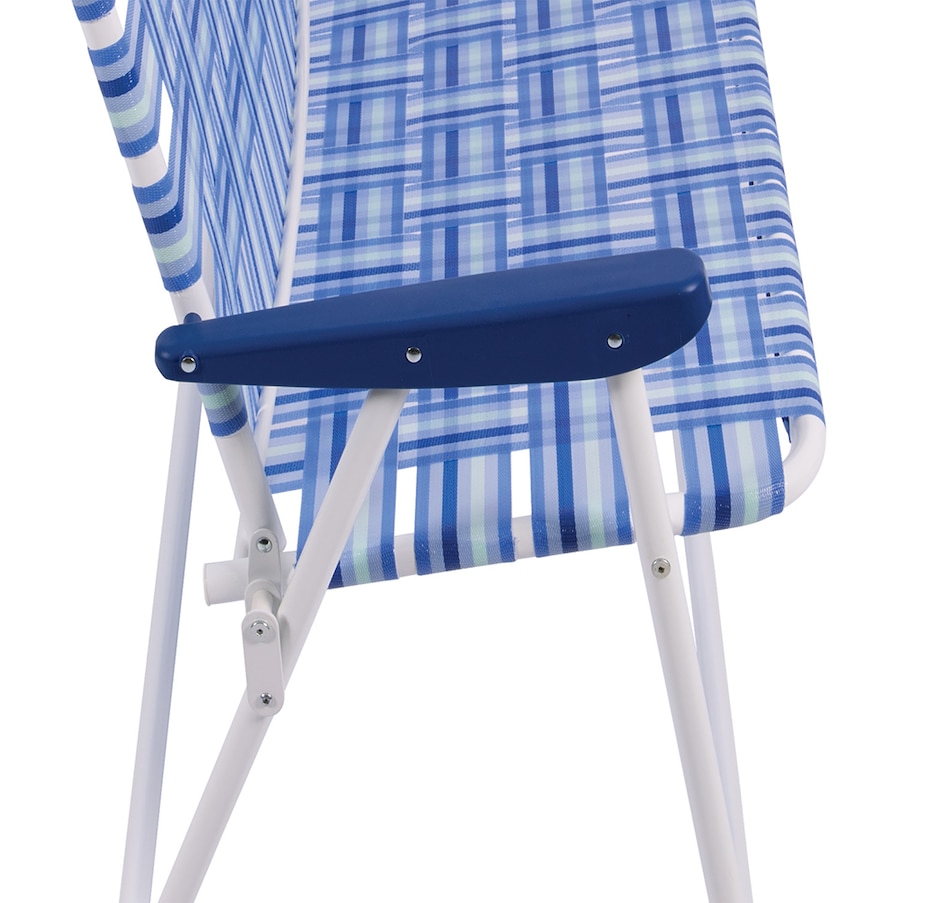 This folding web love seat comes with plastic arms and is ideal for any backyard gathering when you need some additional seating. The loveseat folds up for easy storage and has a rust-resistant powder coated steel frame.