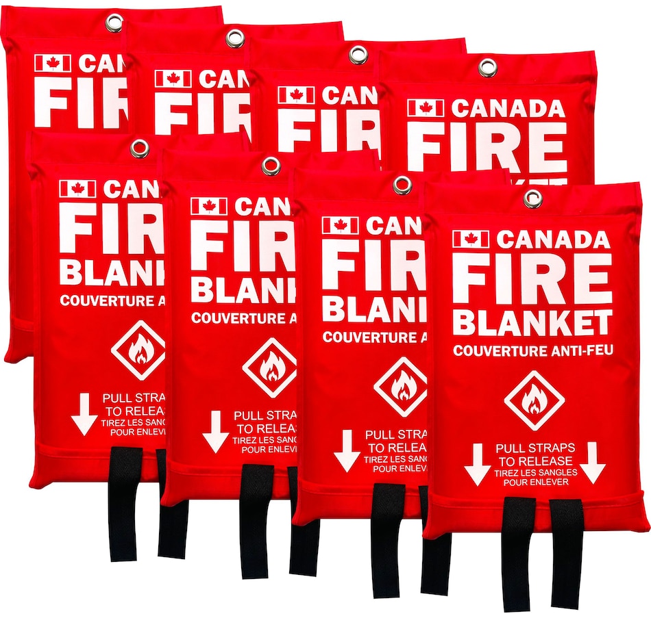 The Canada Fire Blanket is the most convenient and easiest option to extinguish a fire. It can quickly and easily extinguish a small fire before it spreads by suffocating the air. It does not expire, and no mess to clean up afterwards, and most of all, it's the best option to help put out a fire on yourself or someone else.