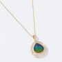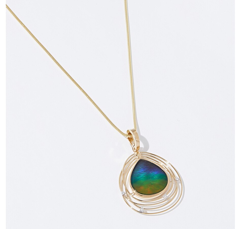 14K Yellow Gold 19mm x 16mm Teardrop Ammolite and Diamond Pendant with Chain